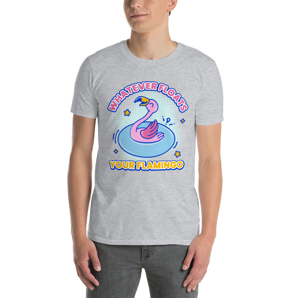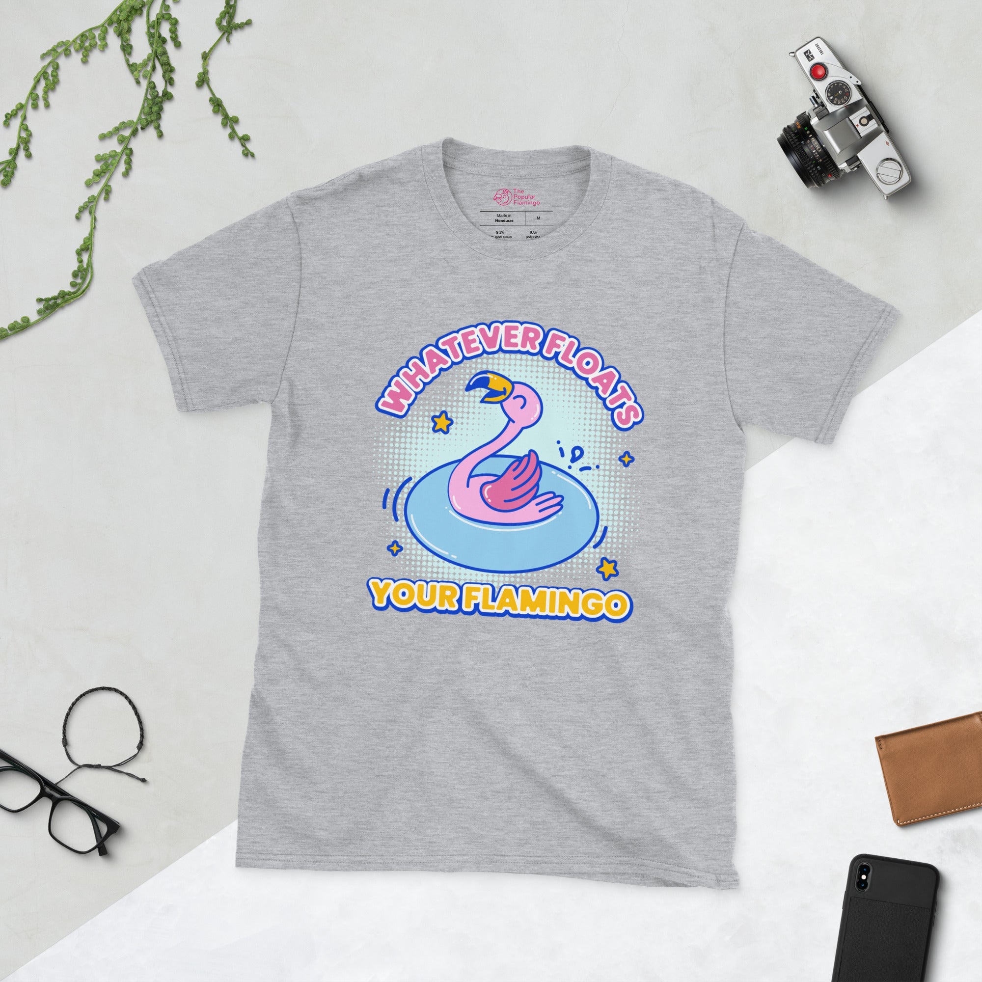 Whatever Floats Your Flamingo T-Shirt ‐ Sport Grey / M
