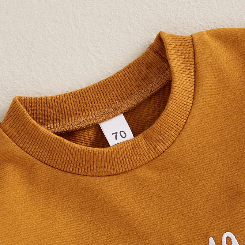 Baby Toddler Girl Boy 2Pcs Homemade Rolls Fall Thanksgiving Outfit Letter Embroidery Long Sleeve Top with Solid Pants Jogger Set ‐ Orange / 6-12M / United States