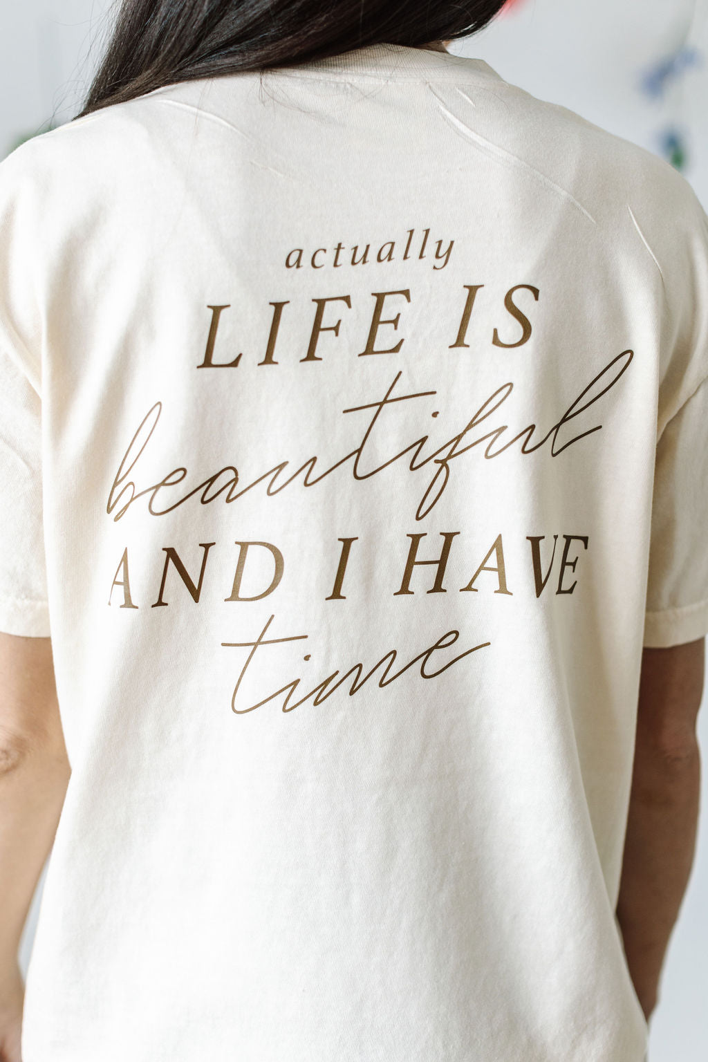 Flower Diamond (Pocket Front) w/ Actually Life is Beautiful and I Have Time (Back) - Unisex Tee