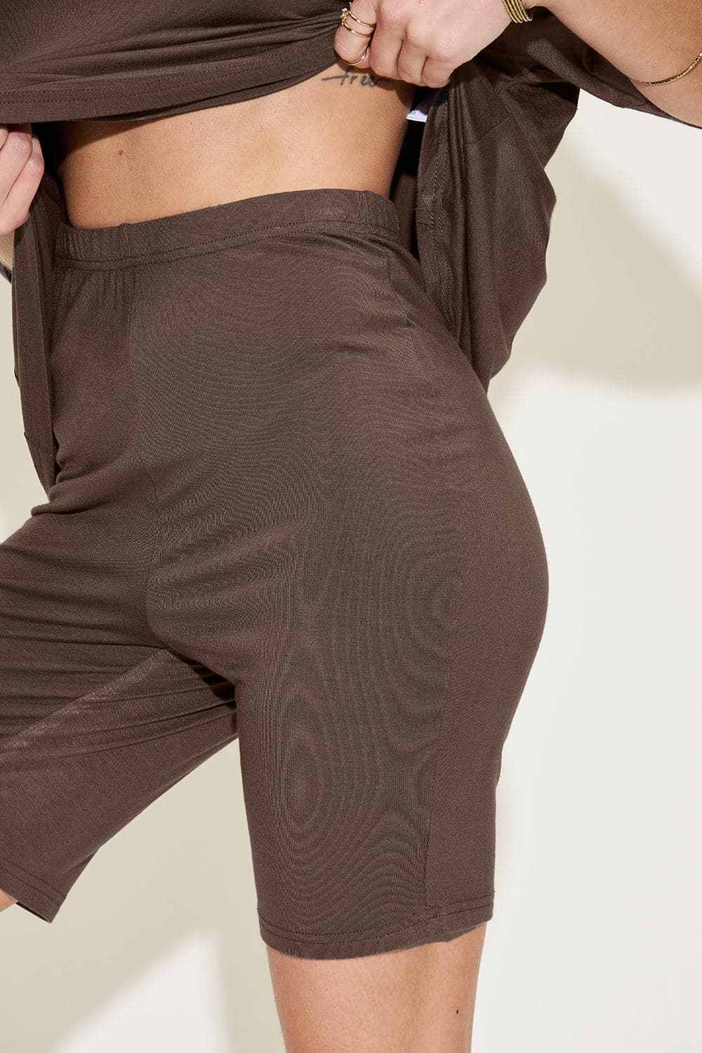 Basic Bae V-neck T-shirt & Shorts Set by ‐ Chocolate / S