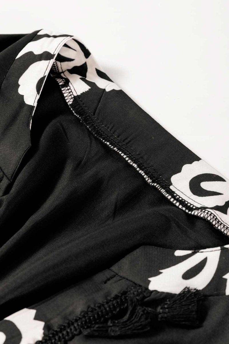 Elevate your style with our Black Plus Size Western Floral Print Fringed V Neck Dress. This chic dress is tailored for a flattering plus-size fit, featuring: