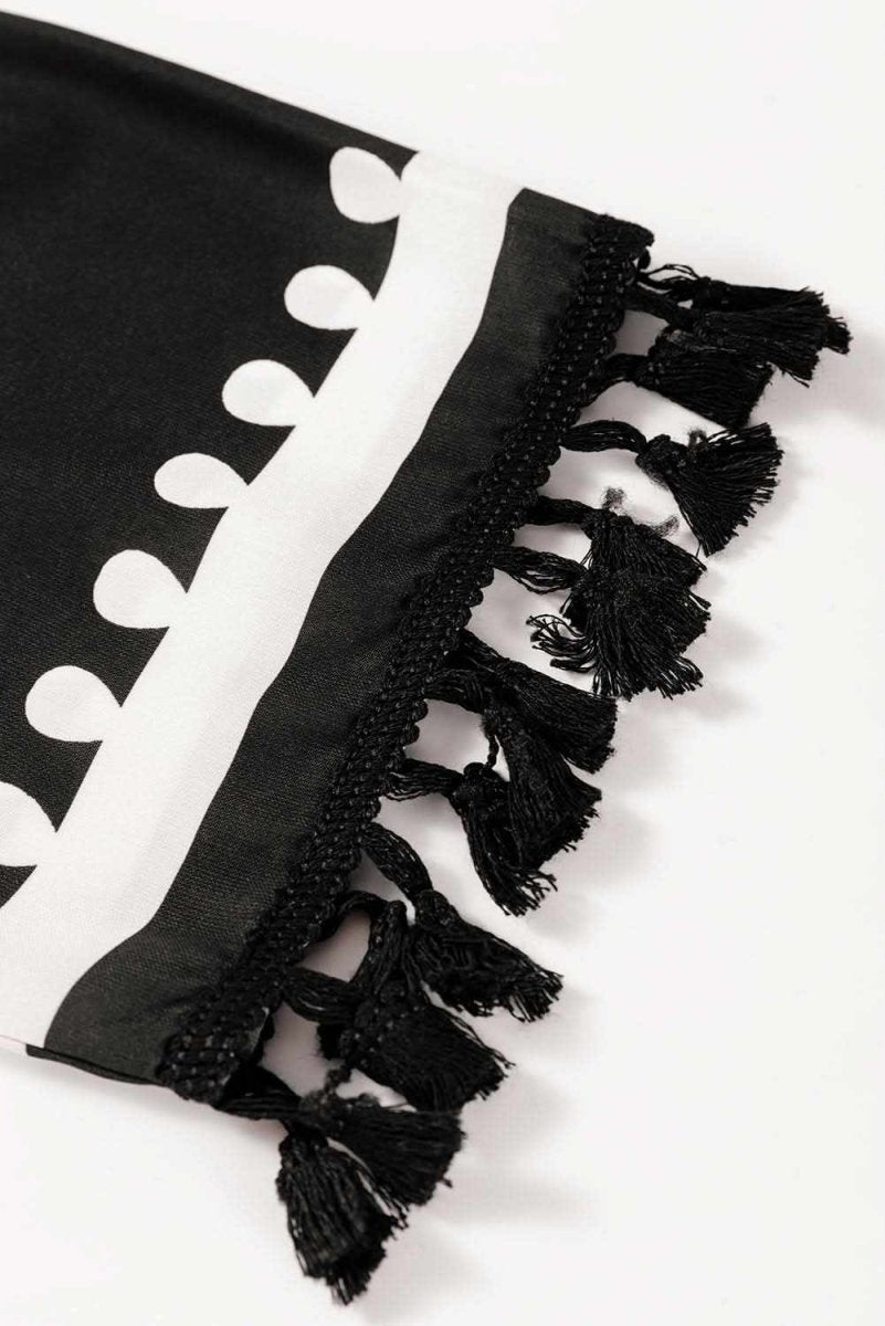 Black Plus Size Western Floral Print Fringed V Neck Dress