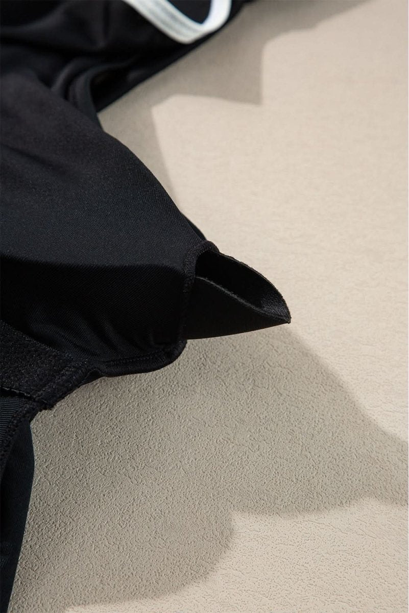 Elegant Black Ruffled V-Neck Wrap Swimsuit with Color Contrast