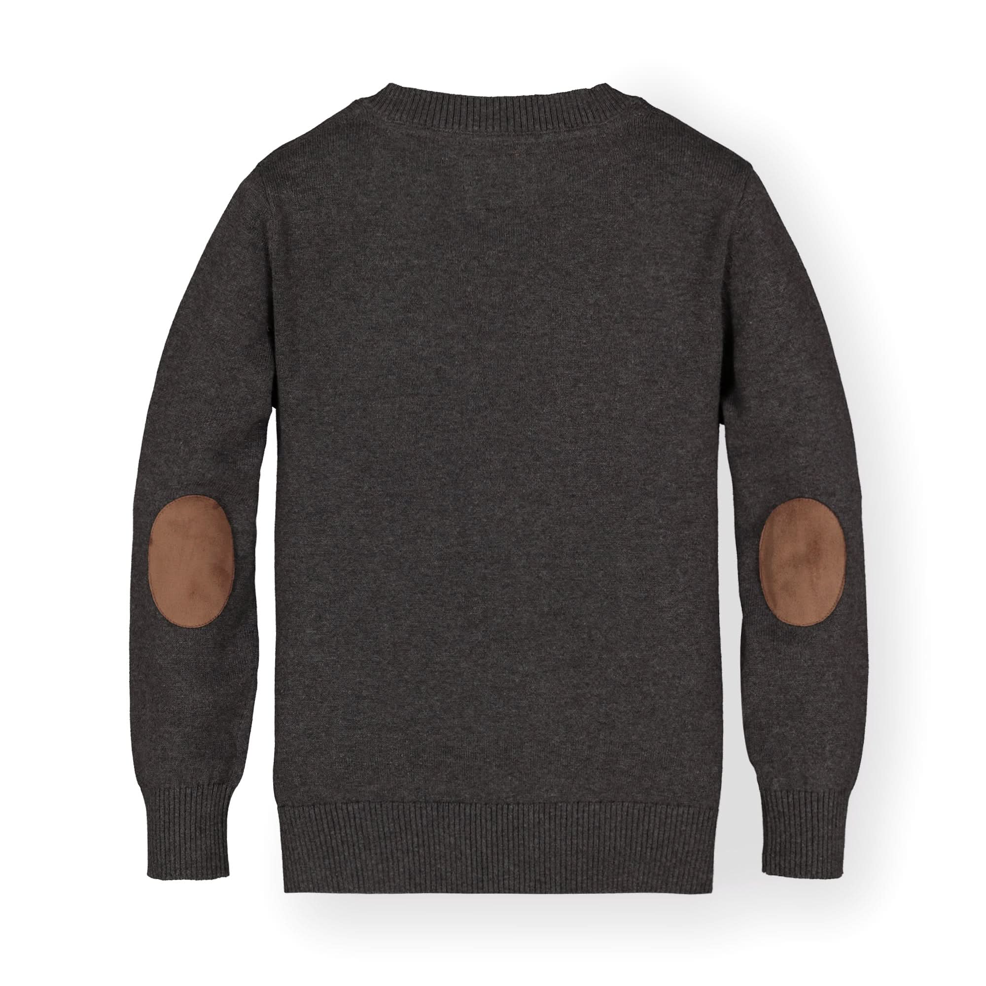 Fine Gauge V-Neck Sweater with Elbow Patches ‐ 18-24 Months / Charcoal Heather with Elbow Patches