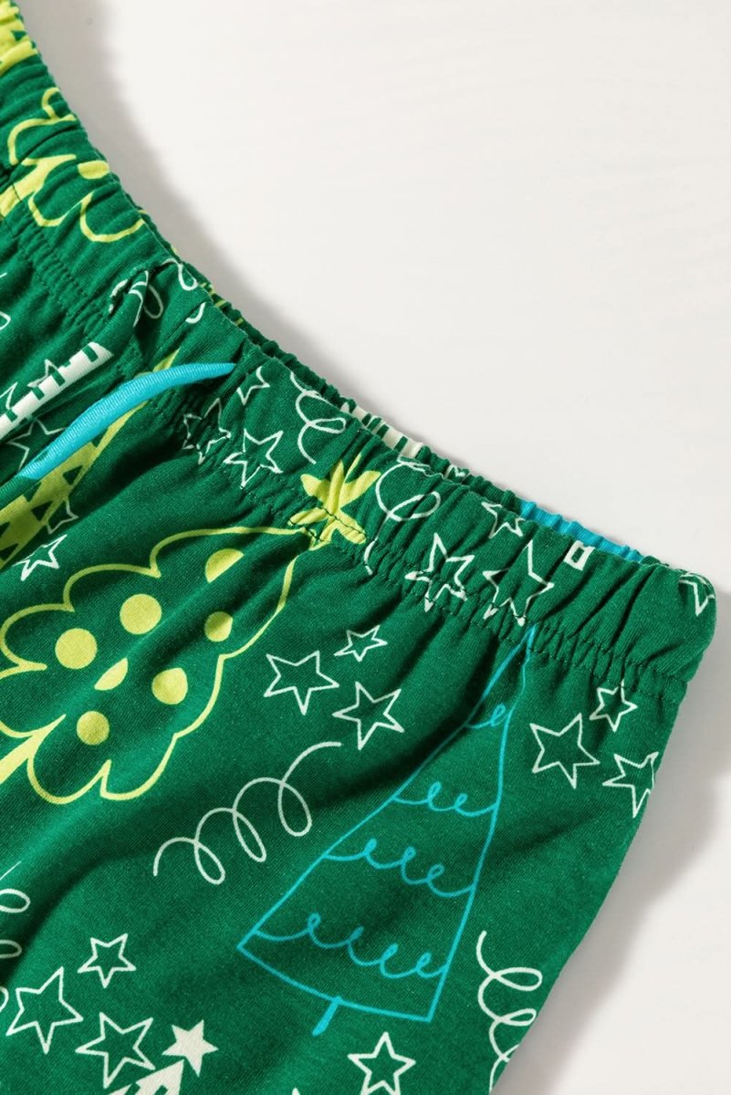 This Green Christmas Tree Print V Neck Tee and Pants Lounge Set is your ticket to holiday cheer. Featuring a charming Christmas tree design, this set is perfect for all your festive activities.