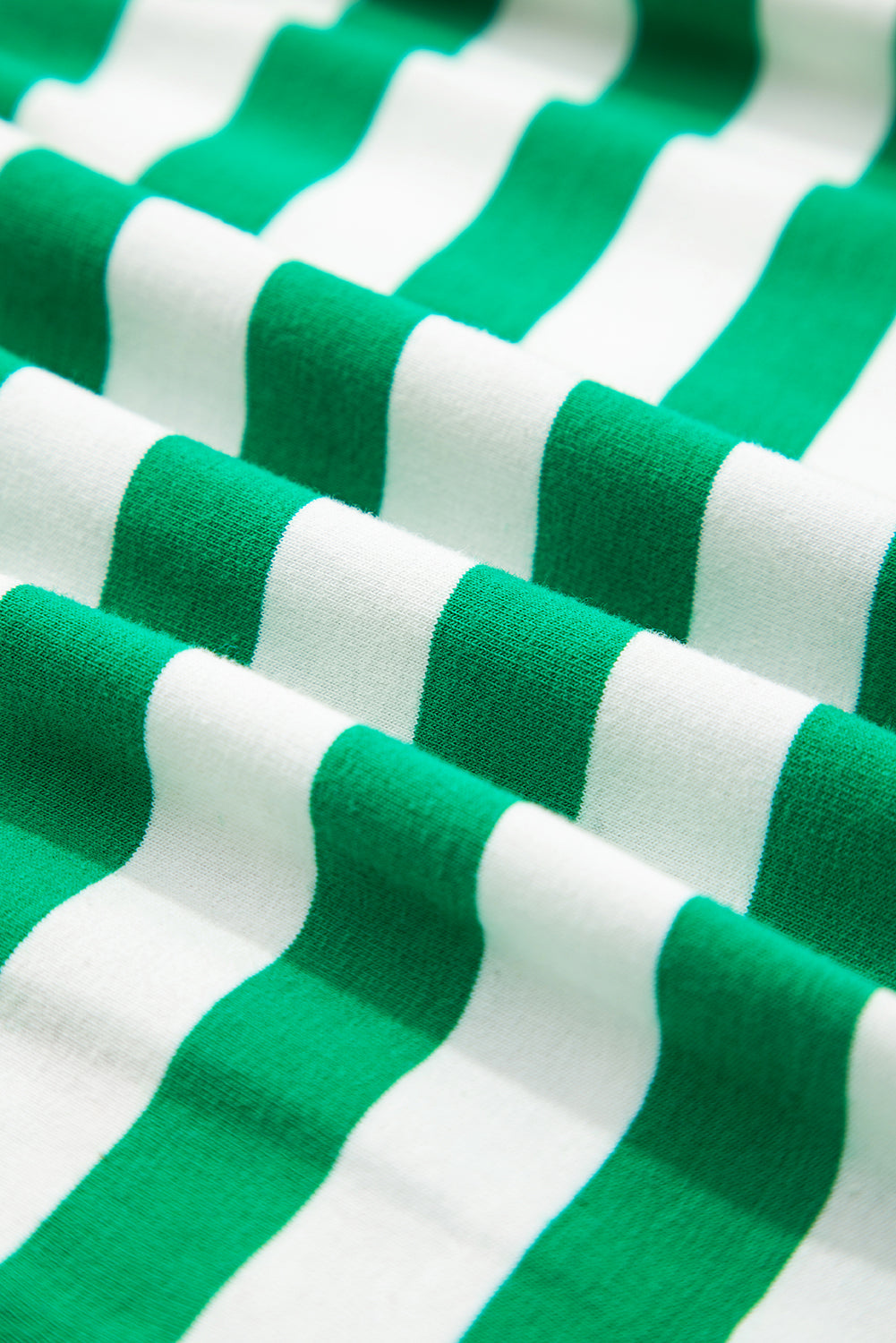 Stripe Colorblock Collared V-Neck Cropped Top ‐ Green Stripe / S