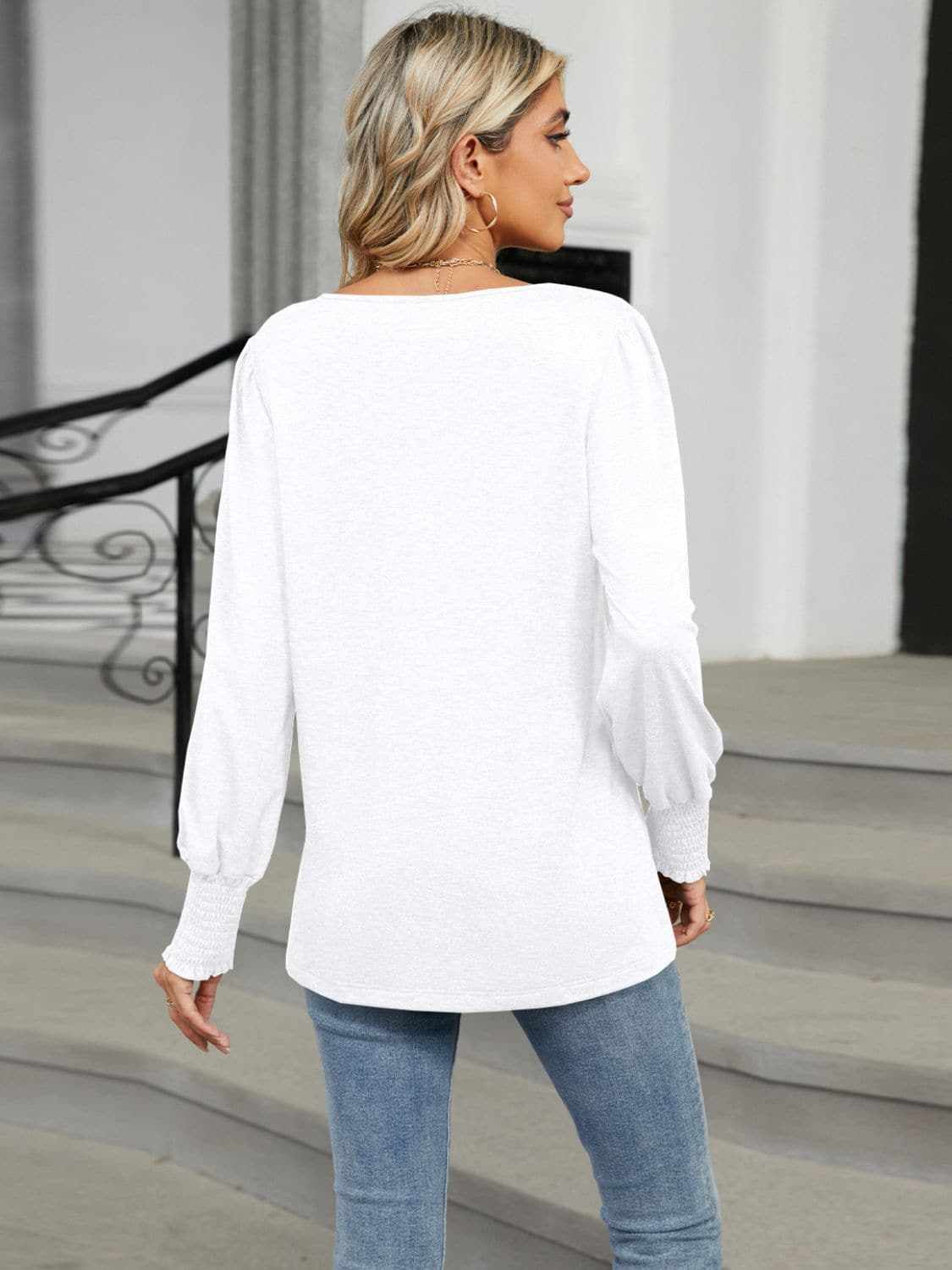 Chic V-neck lantern sleeve top ‐ White / 2XL