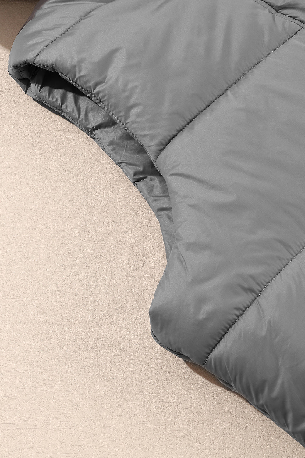 Black Hooded Long Quilted Vest PLUS Coat ‐ Dark Grey / S - 4/6