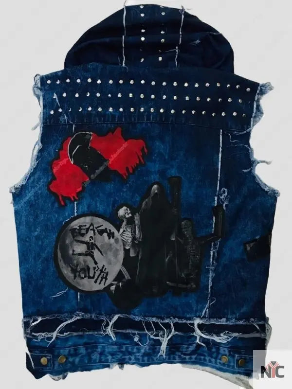 Bray Wyatt Blue Denim Hooded Vest ‐ Male / 3XL