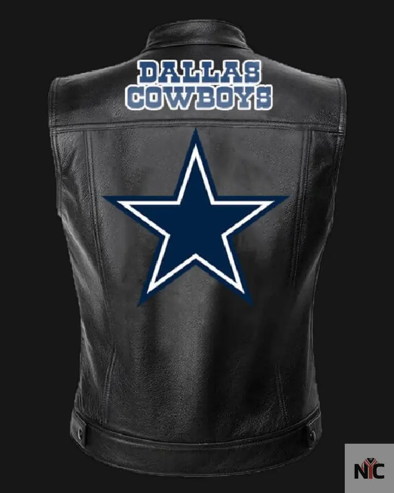NFL Team Dallas Cowboys Black Leather Vest ‐ Male / S