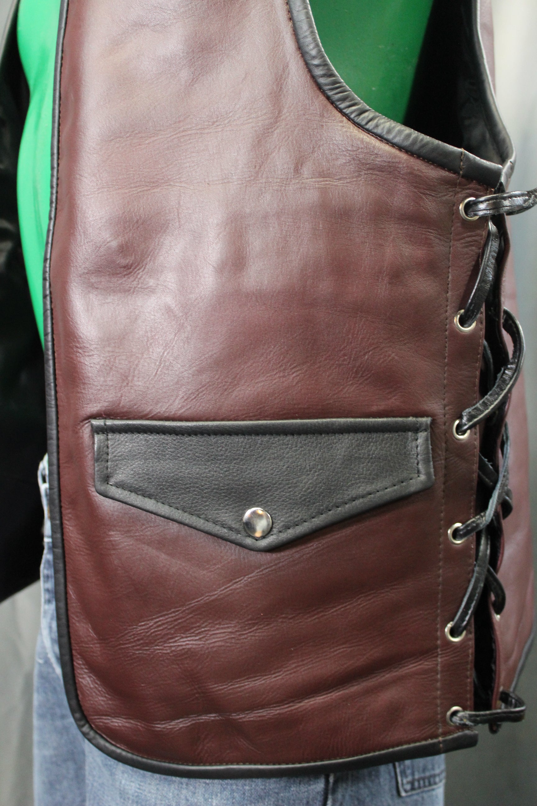 Made our of the softest garment leather and lined for your comfort, these amazing vests are great to wear year round. Yes they have internal AND external pockets! The laced side panels allow you to replace laces with any color you wish to flag. So many possibilities for such a great price!