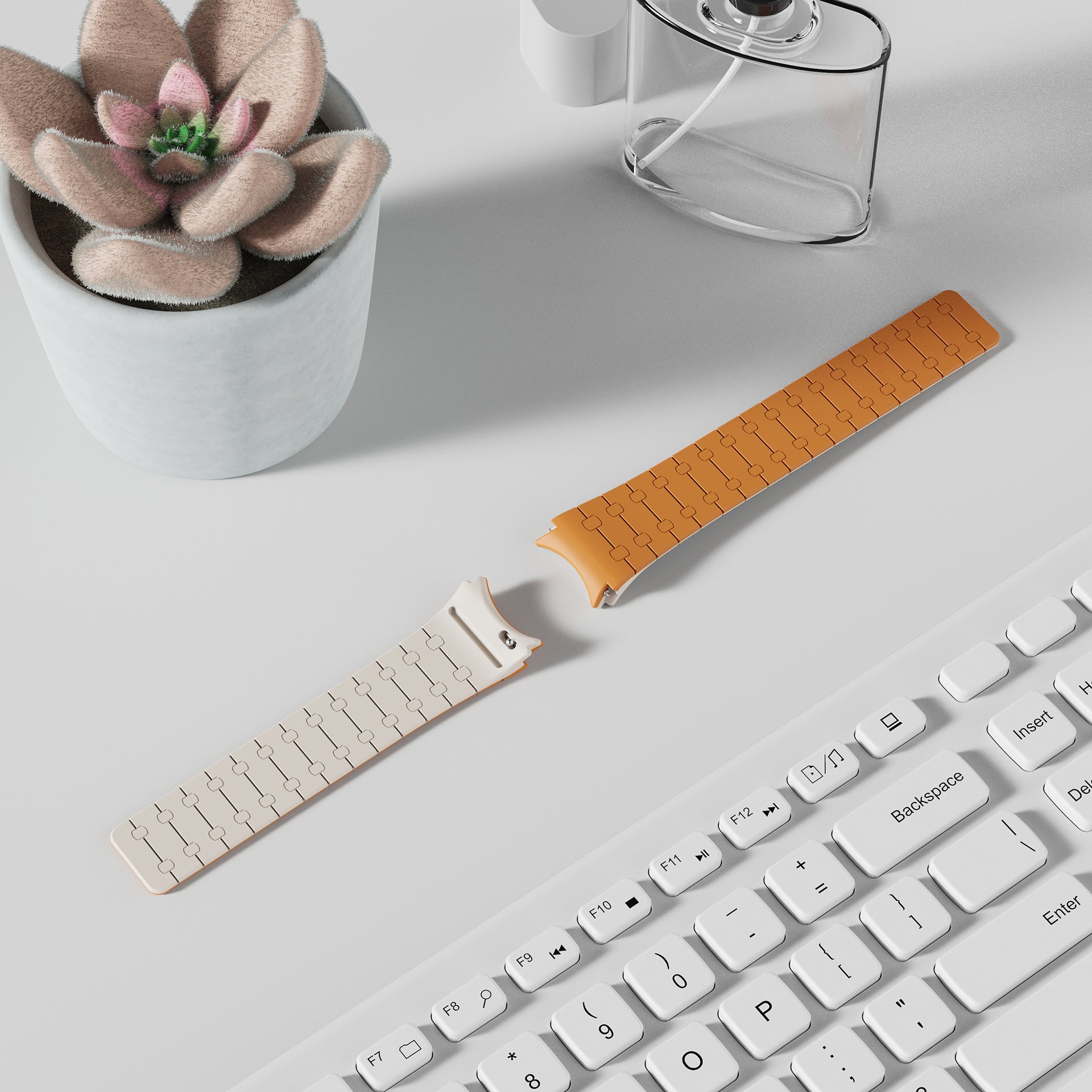 Upgrade your Samsung Galaxy Watch (4/5/5 Pro/6/7/8/Ultra) with this magnetic silicone strap featuring contrasting colors. Stylish and modern, it adds a vibrant touch to your watch while providing all-day comfort.