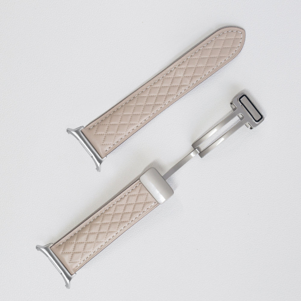 Magnetic Leather Band For Galaxy Watch 20mm ‐ Silver Adapter-Apricot Band / Galaxy Watch 4/5/6/7/8/Ultra