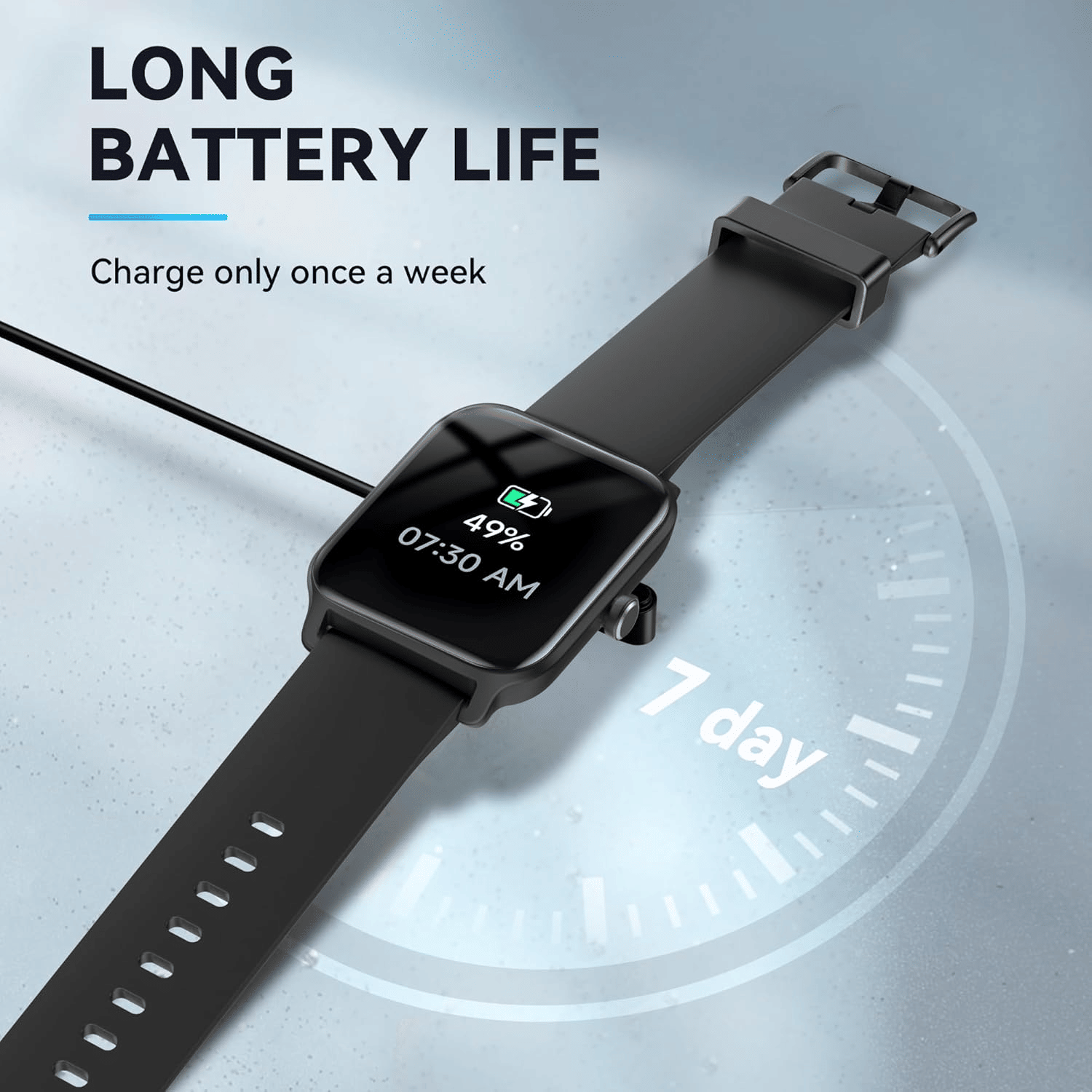 [Sweating Smarter With 5ATM Waterproof]With 100 built-in Sports modes and 5ATM water resistance, activity trackers and smartwatches meet most sports enthusiasts` needs. Android smart watch provides fitness data, including calories, steps, distance, and workout time, making sure sweating is more meaningful