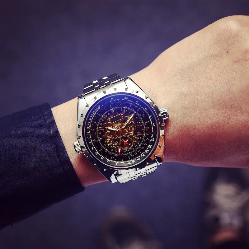 Discover the ultimate blend of style and functionality with our Precision Steel Automatic Mechanical Watch. This large dial men's watch is not just a timepiece; it is a statement of sophistication and strength, perfect for military enthusiasts, sports lovers, and students alike.