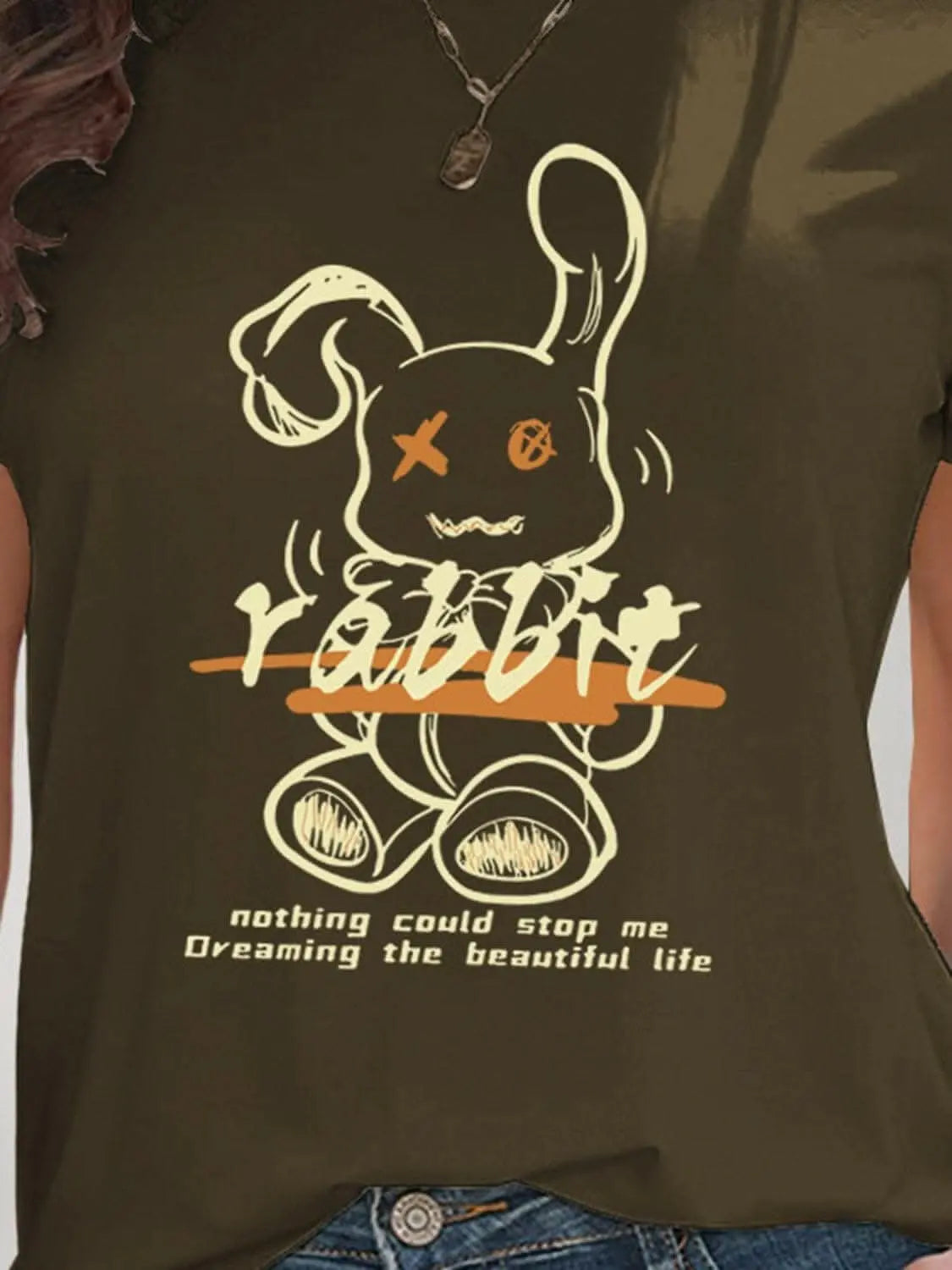 just arrived - Chic rabbit graphic tee for women ‐ Army Green / XL