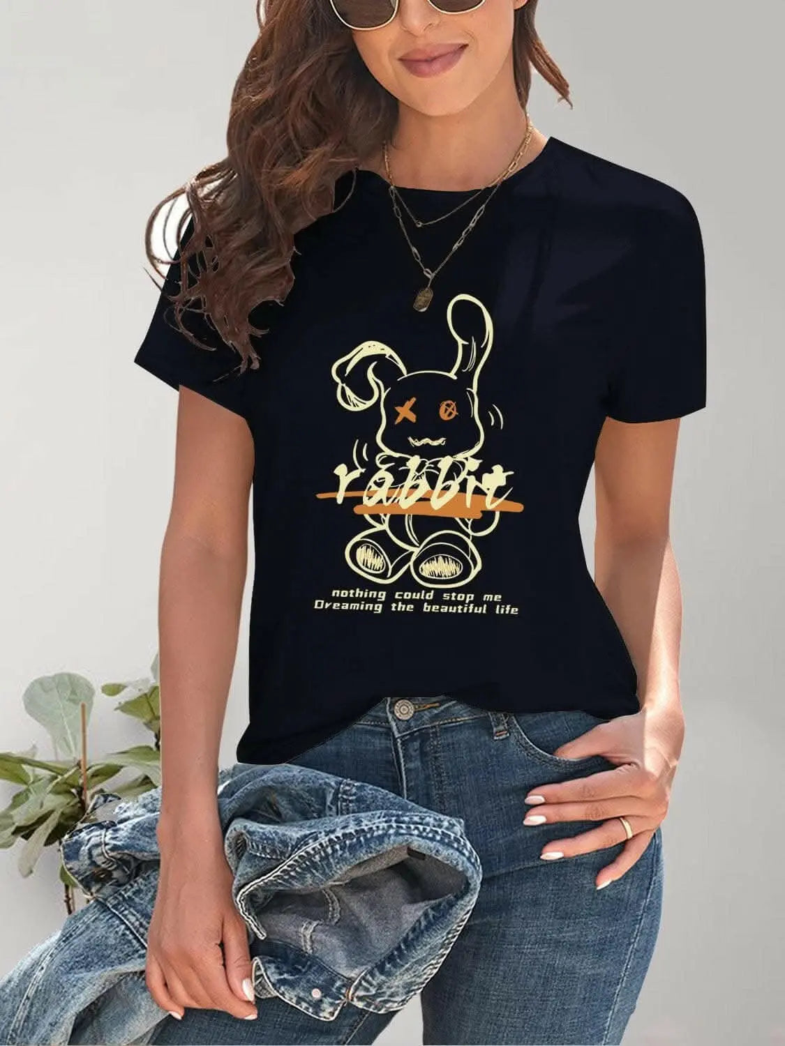 just arrived - Chic rabbit graphic tee for women ‐ Black / XL