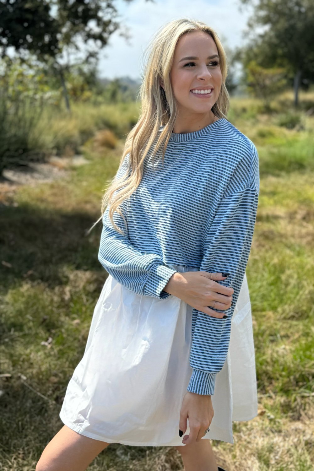 Premium Chloe Stripe Pleated High Waist Dress for Women ‐ Sky Blue Stripe / S - 4/6