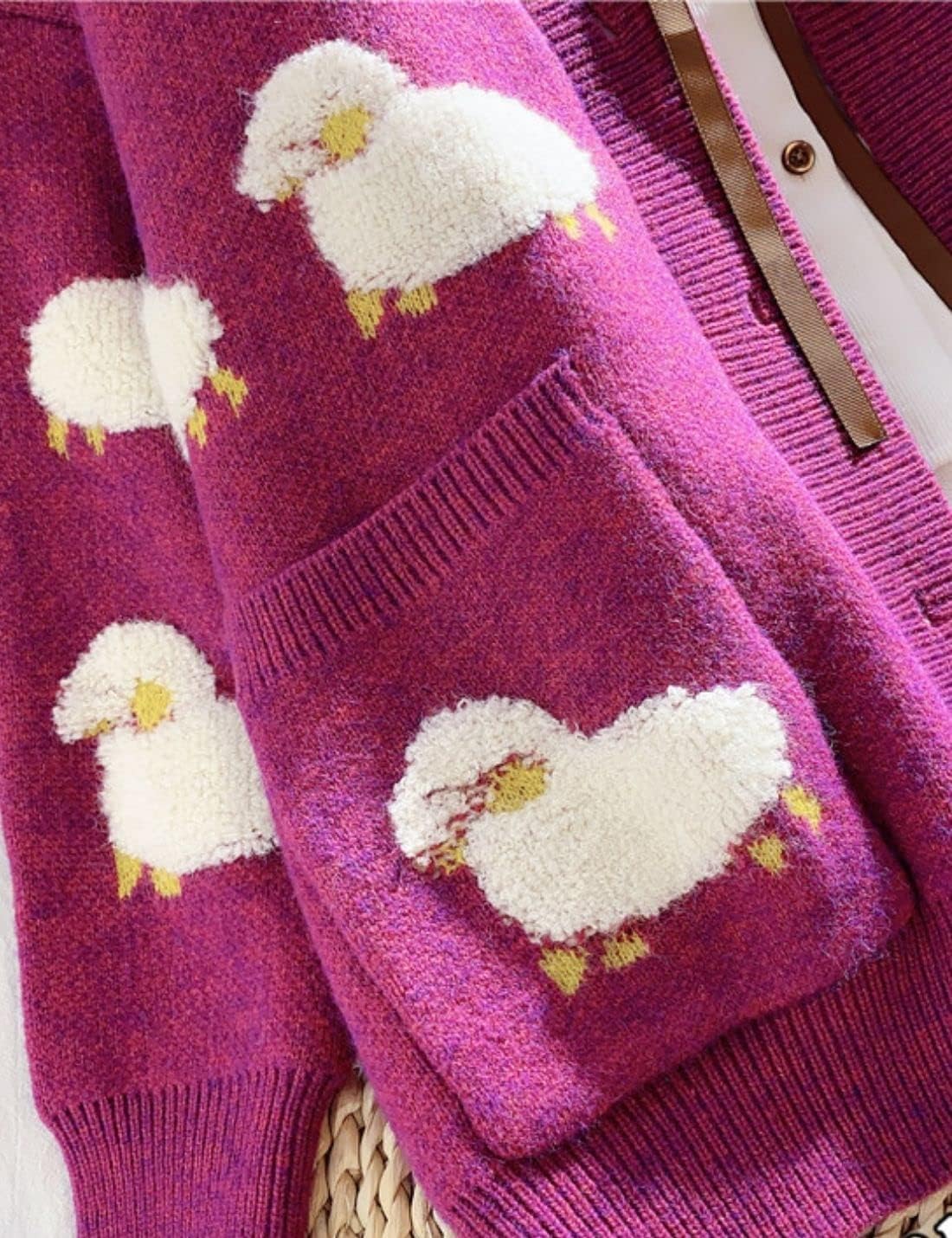 Unilexi Women's V Neck Button Long Sleeve Sweater Cartoon Sheep Cute Knitted Cardigan Coat with Pockets