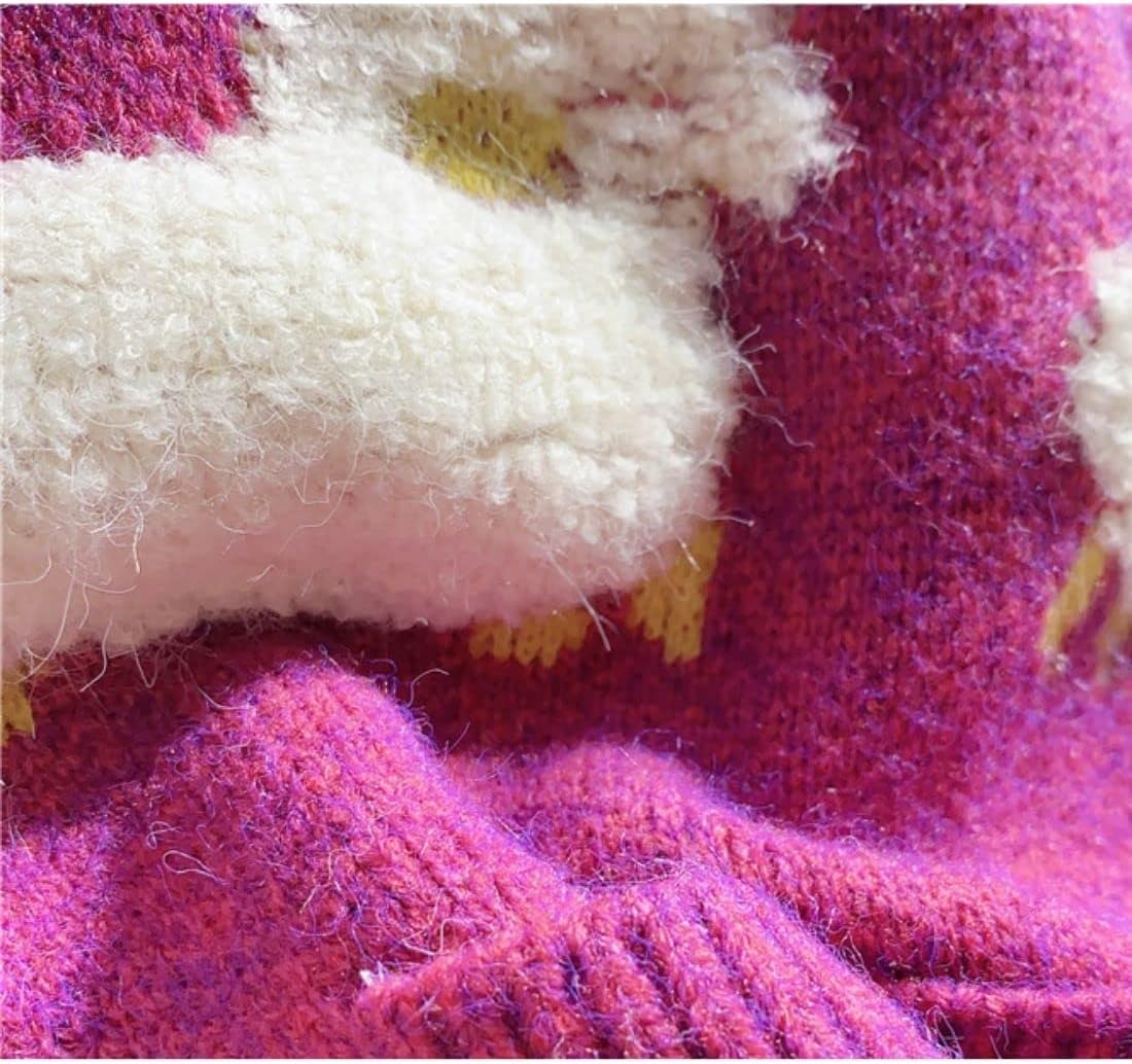 Unilexi Women's V Neck Button Long Sleeve Sweater Cartoon Sheep Cute Knitted Cardigan Coat with Pockets ‐ Rose Red / Medium