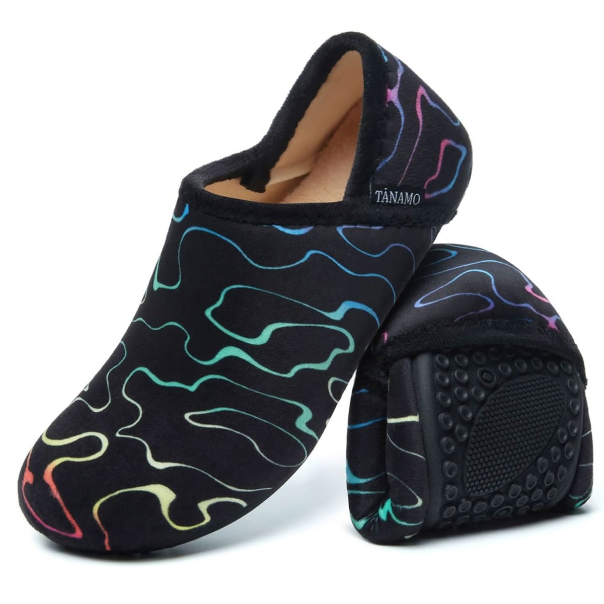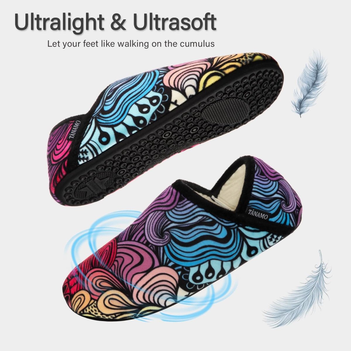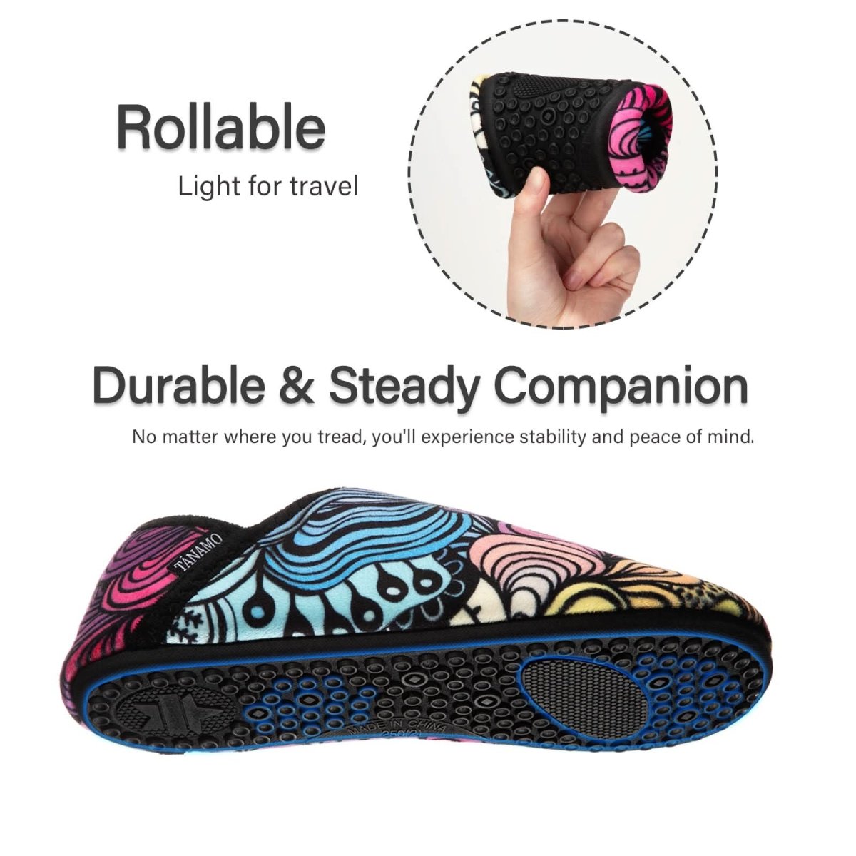 House Slippers for Women Men Indoor Barefoot Slippers Socks Furry Slip on House Shoes Cozy Comfy Slippers for Home Bedroom Travel Yoga ‐ Boho Bohemia Black / 5-6 Women / 4-5 Men
