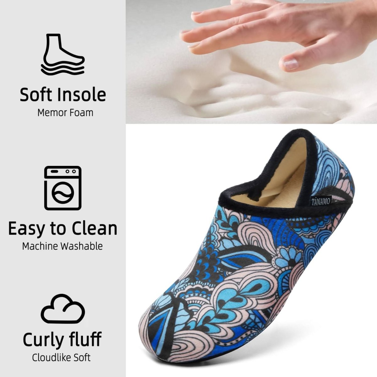 House Slippers for Women Men Indoor Barefoot Slippers Socks Furry Slip on House Shoes Cozy Comfy Slippers for Home Bedroom Travel Yoga ‐ Boho Bohemia Blue / 5-6 Women / 4-5 Men