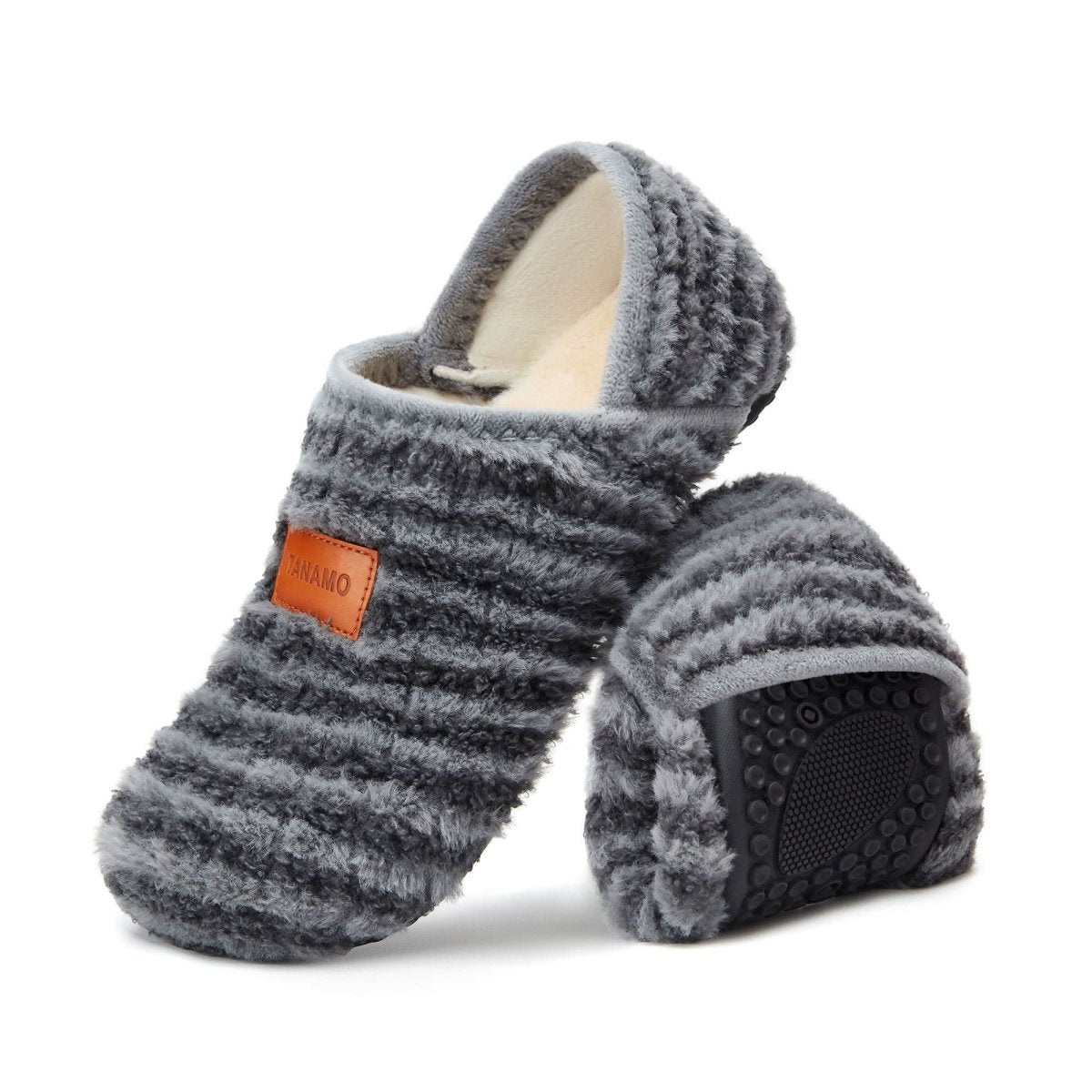 House Slippers for Women Men Indoor Barefoot Slippers Socks Furry Slip on House Shoes Cozy Comfy Slippers for Home Bedroom Travel Yoga ‐ Stripes Dark Black / 5-6 Women / 4-5 Men