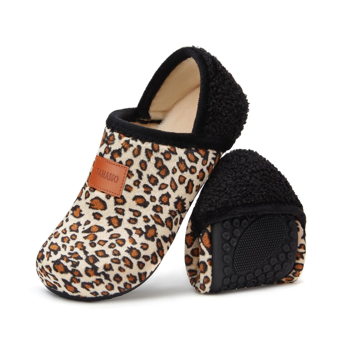 House Slippers for Women Men Indoor Barefoot Slippers Socks Furry Slip on House Shoes Cozy Comfy Slippers for Home Bedroom Travel Yoga ‐ Leopard Kahaki / 5-6 Women / 4-5 Men
