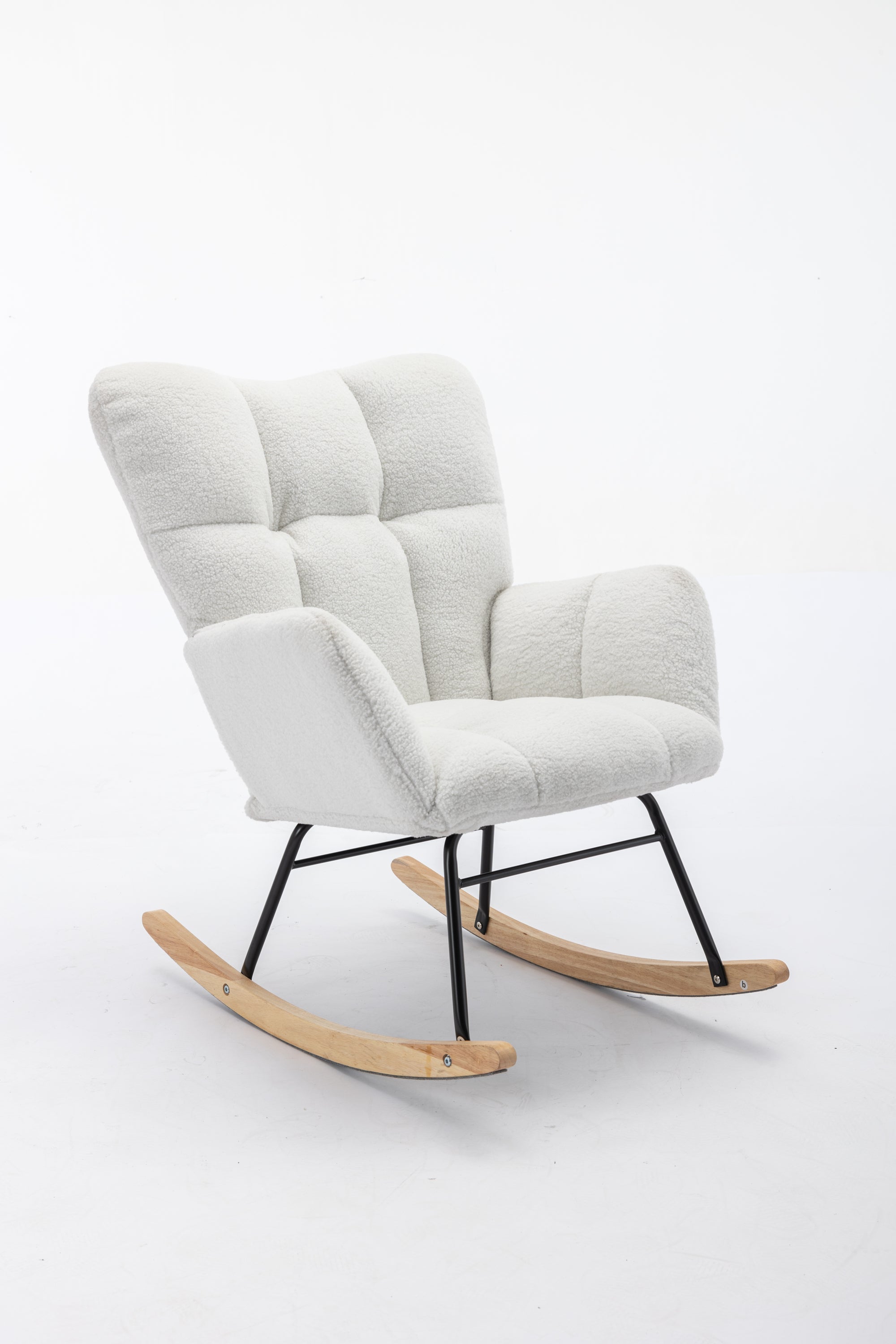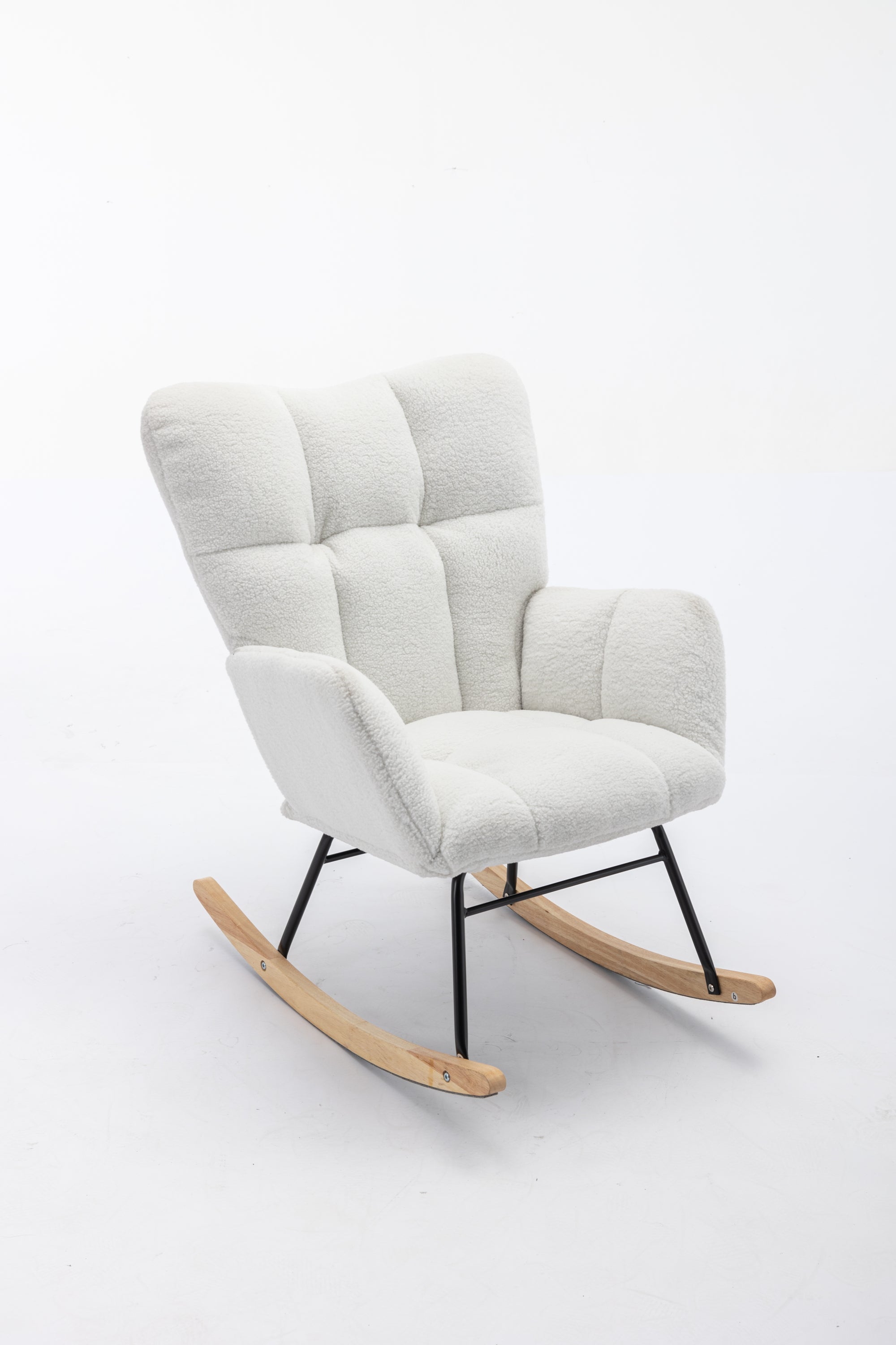 050-Teddy Fabric Rocking Gilder Nursery Chair For Living Room Indoor,Ivory ‐ Default