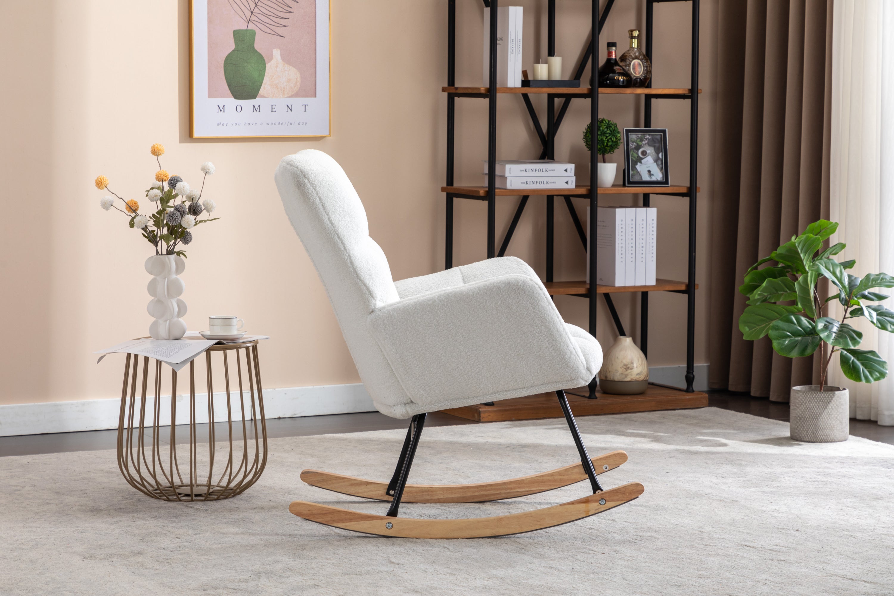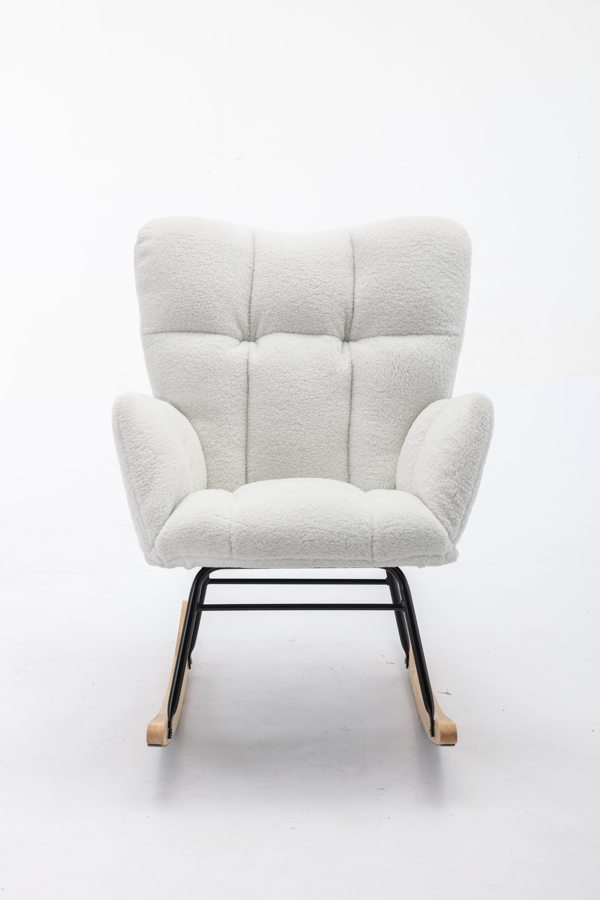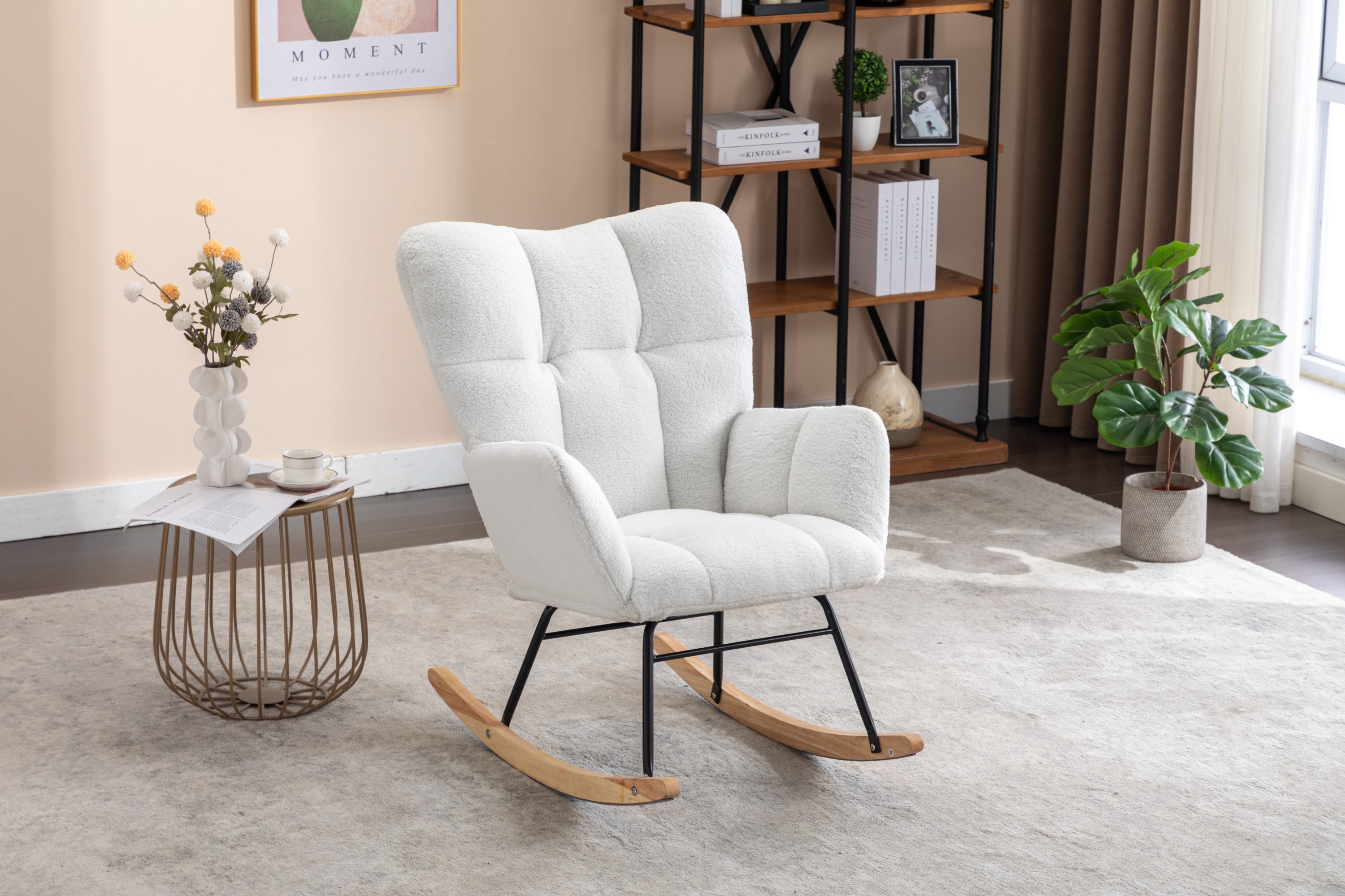 - Product BOM:Soft Teddy Material+Foam Filling+Wooden Frame+Black Paint Metal Base+Wooden Rocking Legs+Upholstered+Floor Protection And Isolation Layer;