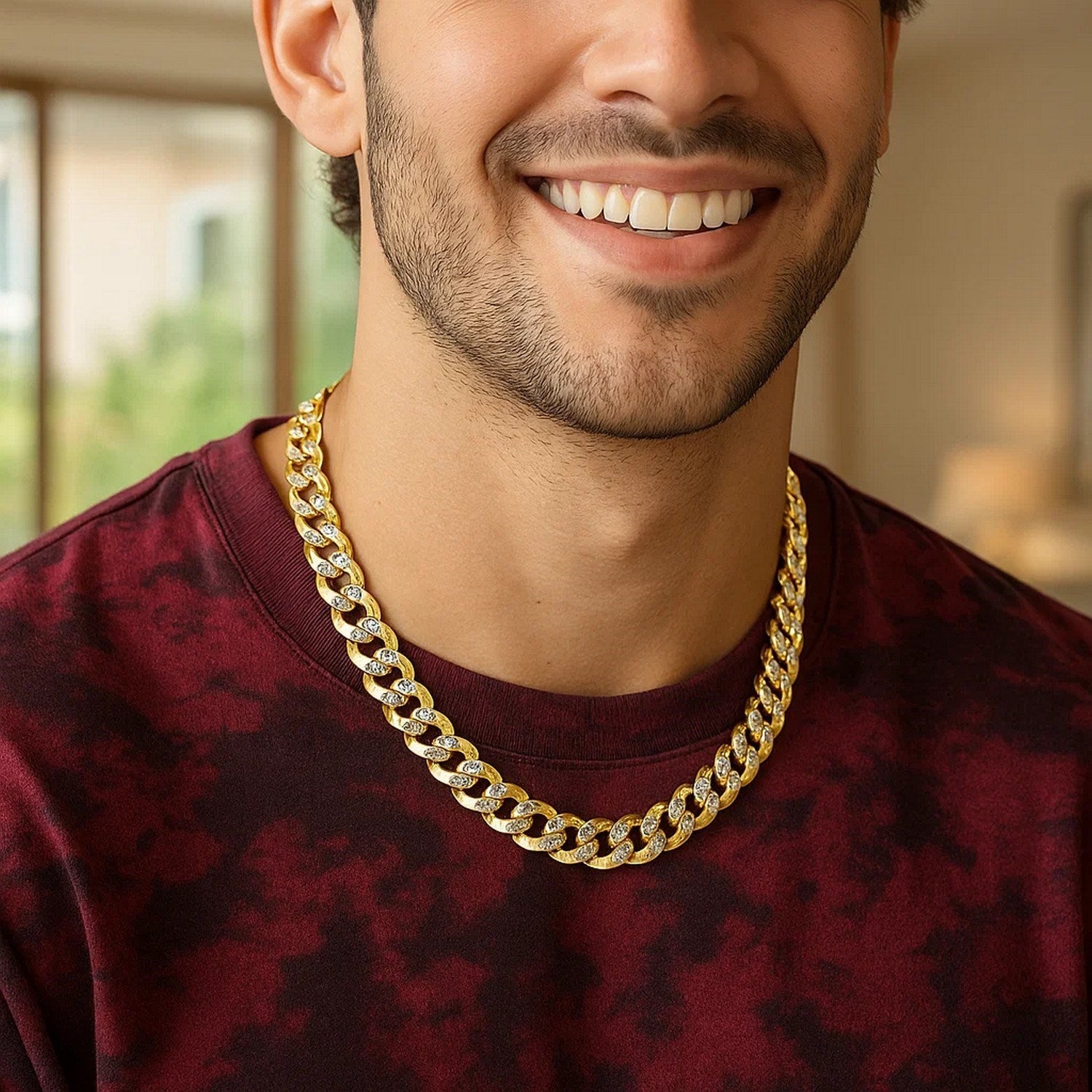 10 mm 14k Two Tone Gold Pave Curb Chain (9.70 mm) ‐ 24'' / Two-Tone Gold