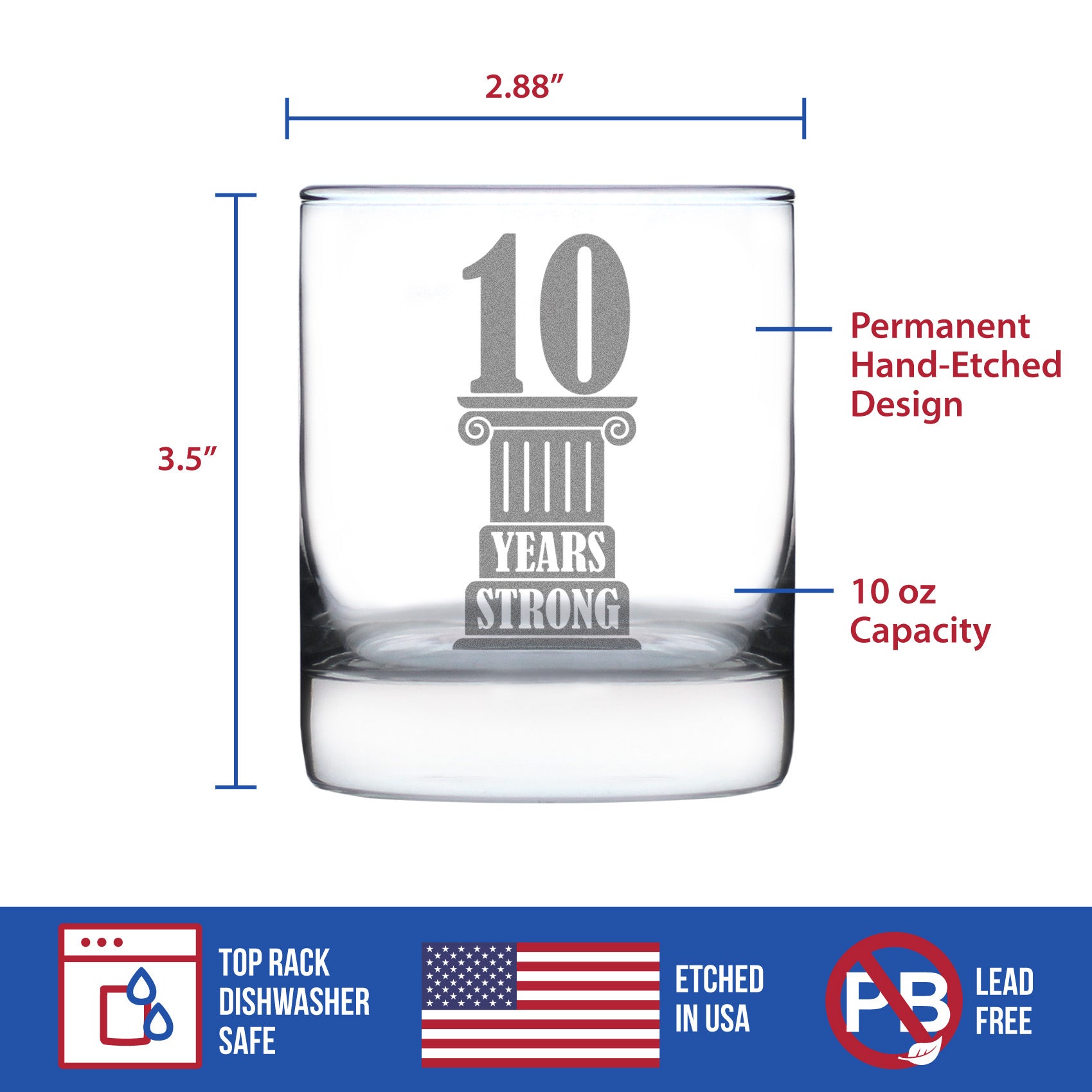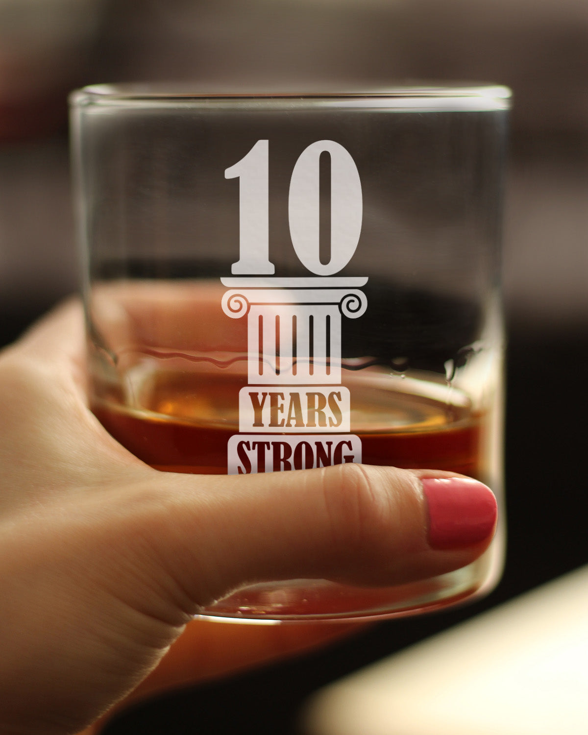 10 Years Strong Engraved Rocks Glass Gifts 10th Anniversary Party Decor Weighted Whiskey Glasses - 10.25 oz