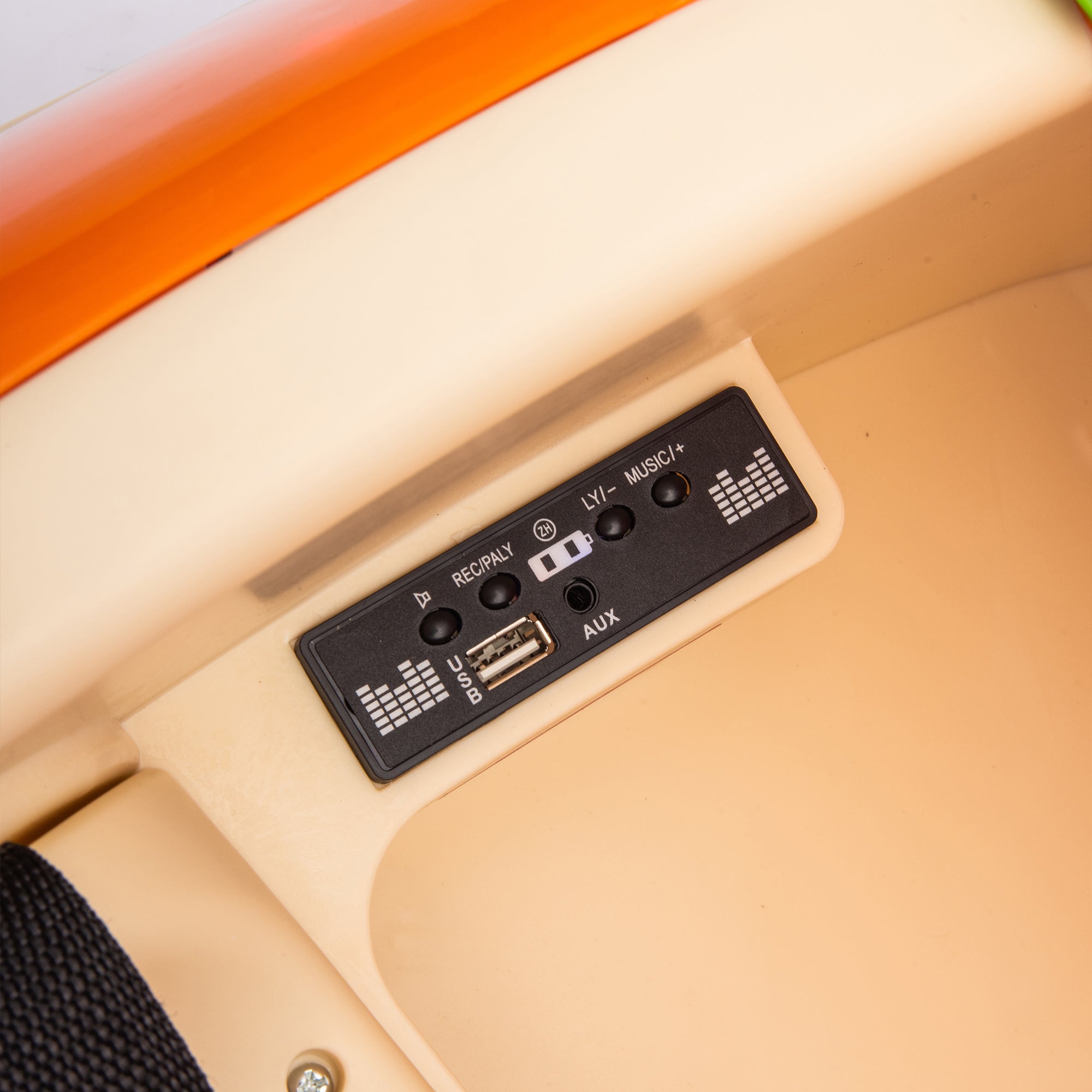 - This children's electric ride-on car features Bluetooth 2.4G for seamless wireless connection with smartphones, while also including a built-in MP3 player preloaded with music for instant play. The thoughtful adjustable volume control allows parents to set comfortable sound levels according to their child's hearing sensitivity, ensuring both auditory protection and joyful entertainment.