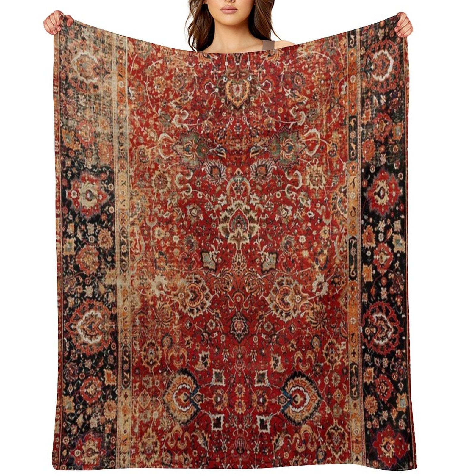 17th Century Afghanistan Rug Print Throw Blanket ‐ 17th Century Afghanistan Rug Print / 60"×80"