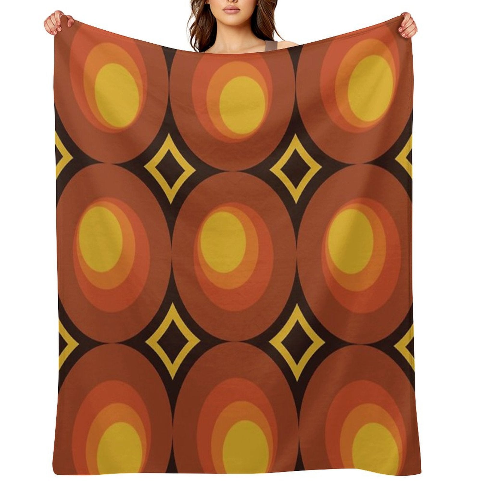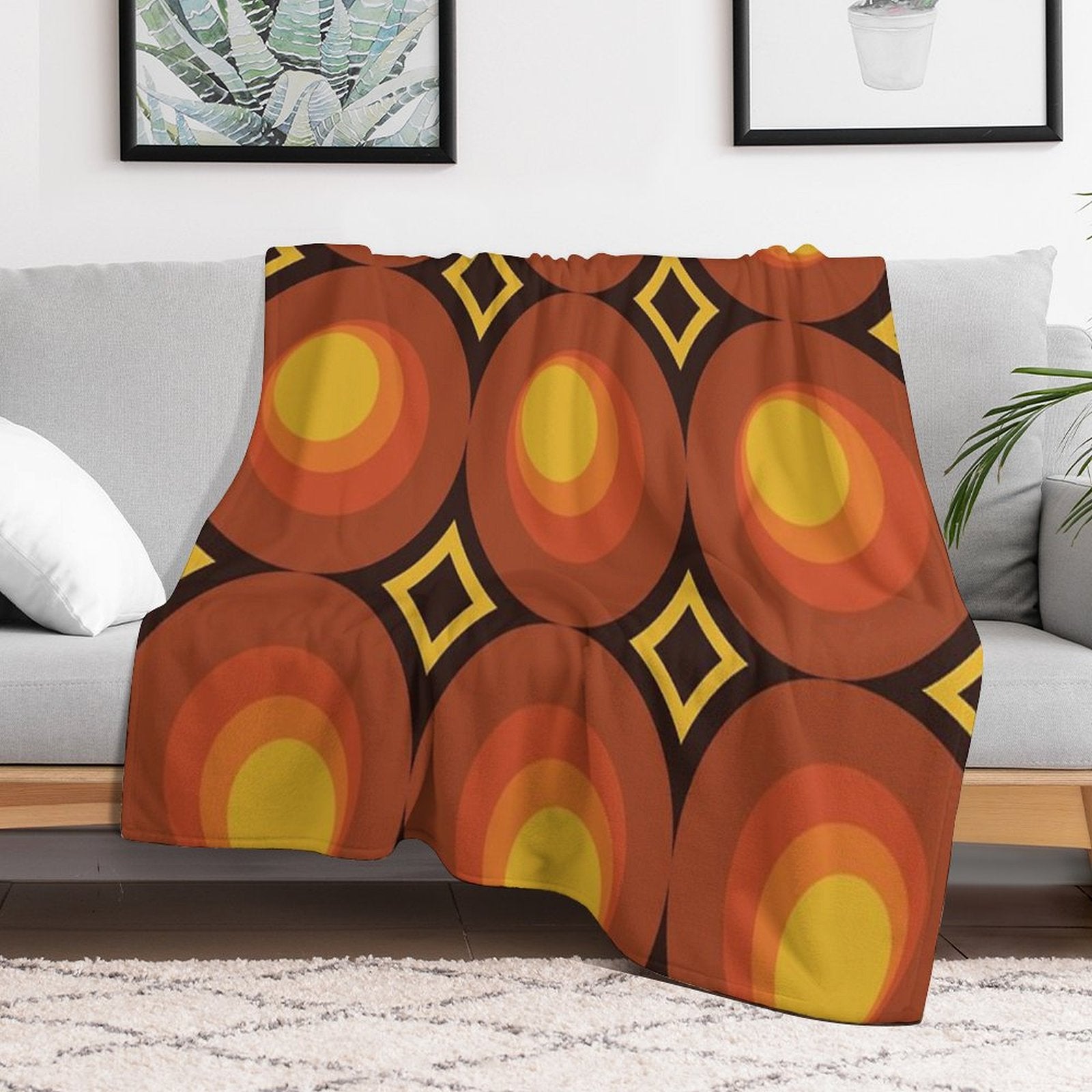 1970s Orange Mid-Century Modern Circle 2 Throw Blanket