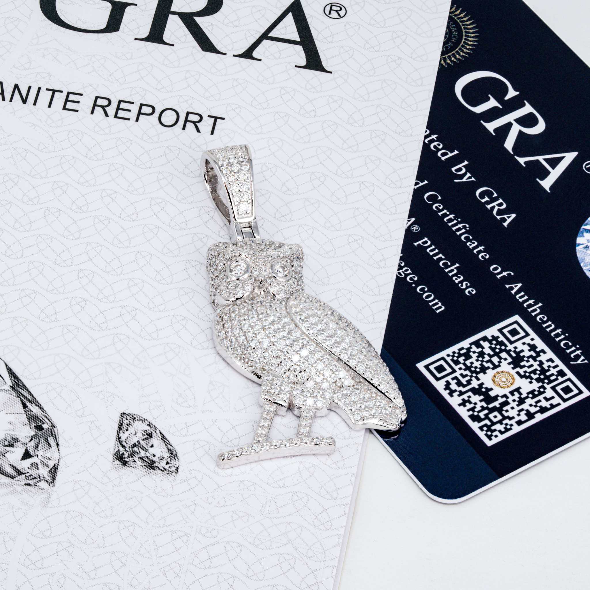 2 TCW Moissanite Owl Pendant 925 Sterling Silver