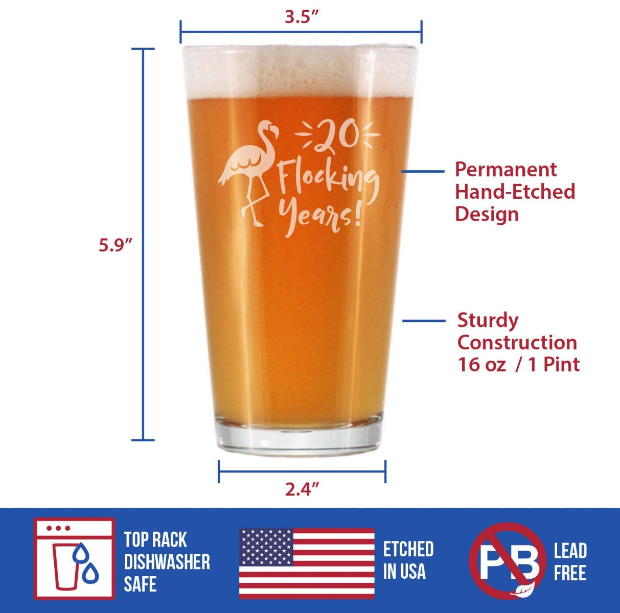 20 Flocking Years - 16 Ounce Pint Glass