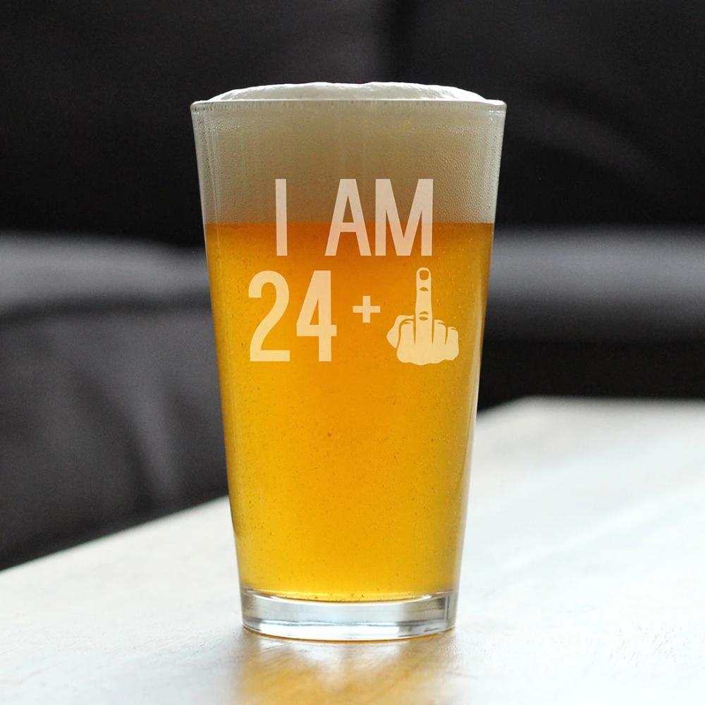 24 + 1 Middle Finger - 16 oz Pint Glass for Beer - Funny 25th Birthday Gifts for Men and Women Turning 25