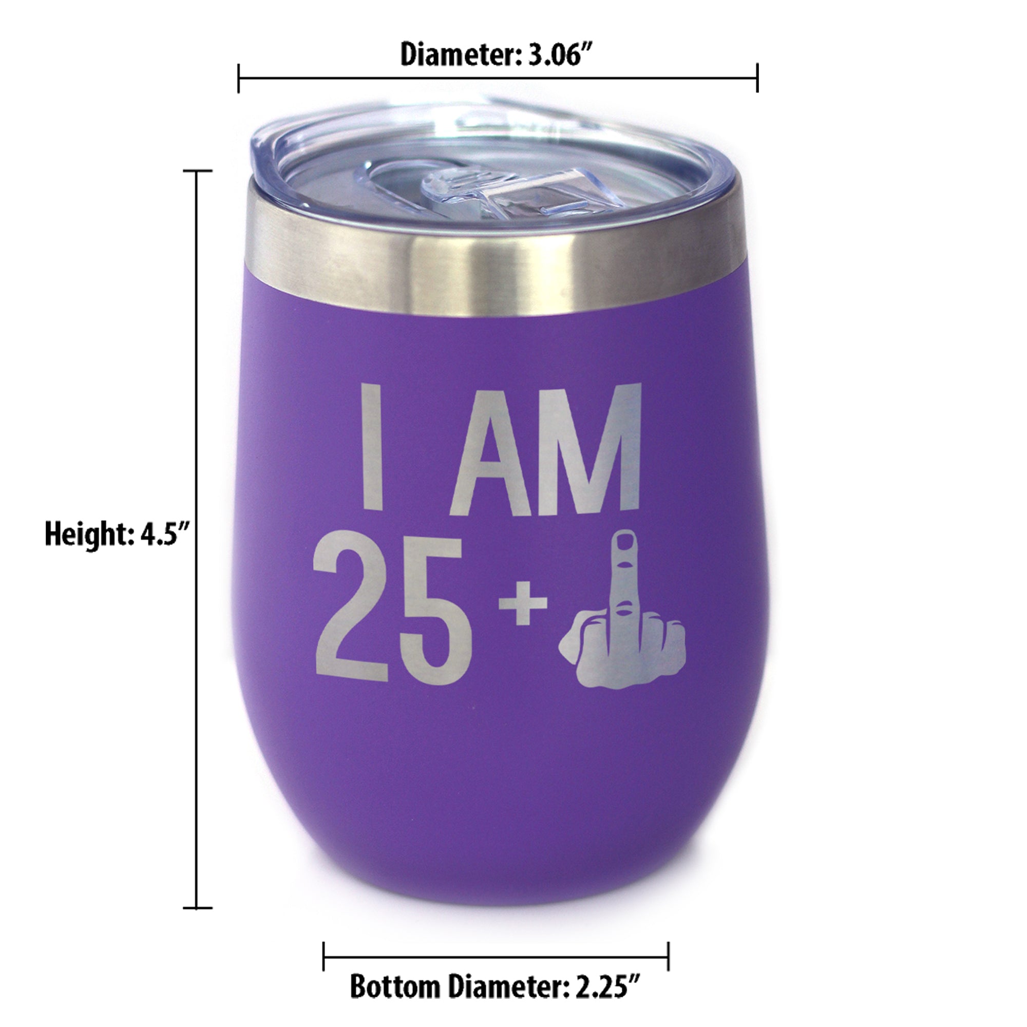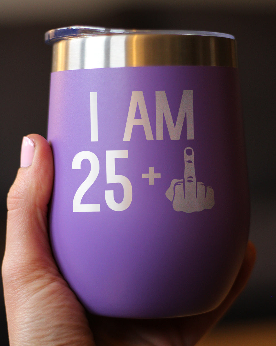 25 + 1 Middle Finger - Wine Tumbler - Cute Funny 26th Birthday Gift for Women or Men Turning 26 ‐ Purple
