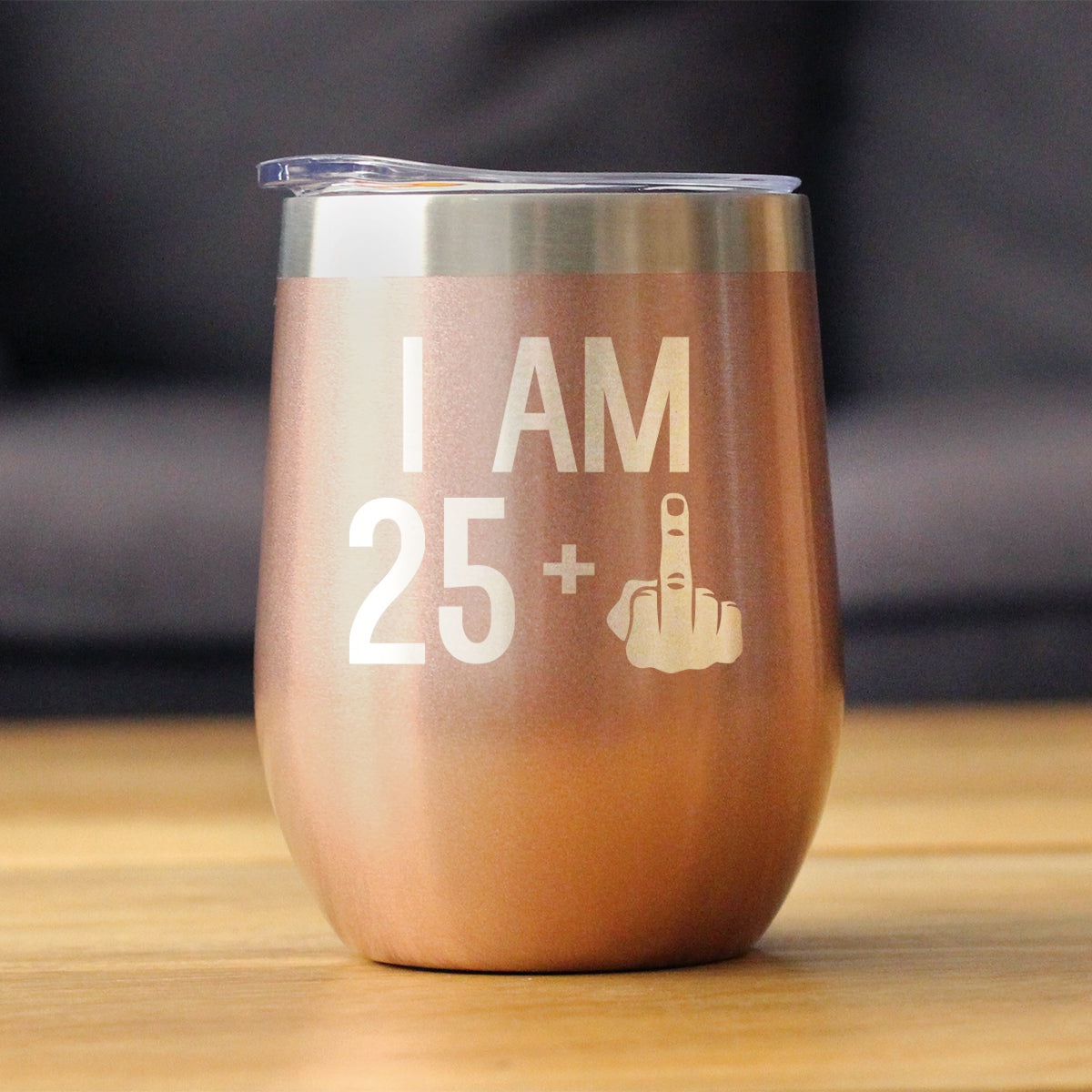 25 + 1 Middle Finger - Wine Tumbler - Cute Funny 26th Birthday Gift for Women or Men Turning 26