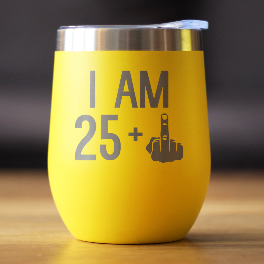 25 + 1 Middle Finger - Wine Tumbler - Cute Funny 26th Birthday Gift for Women or Men Turning 26 ‐ Yellow