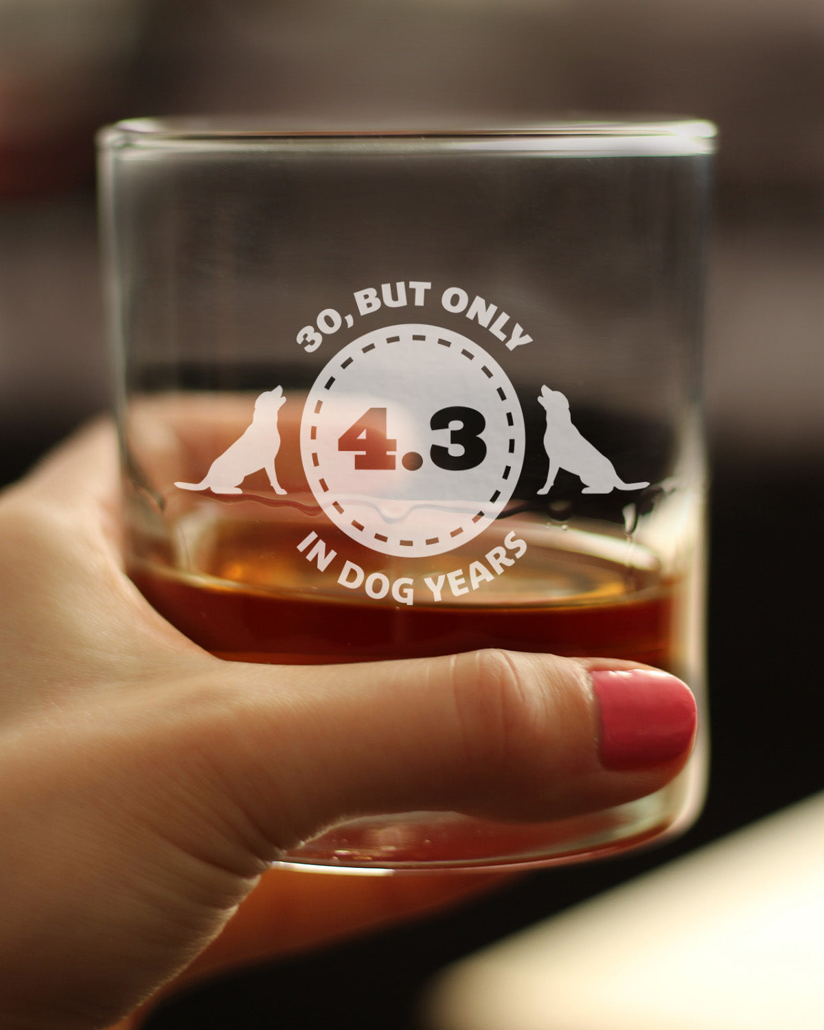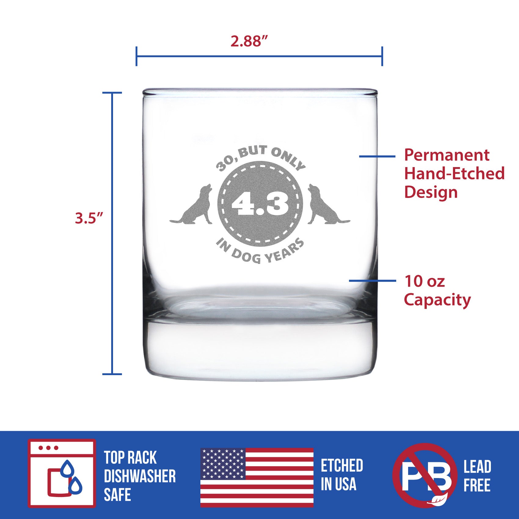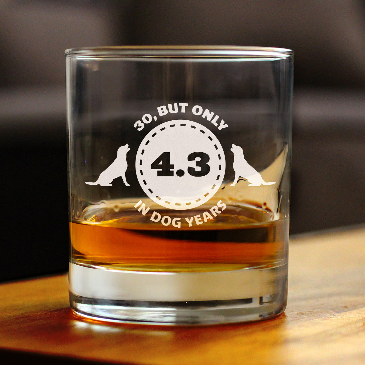 30th Birthday Dog Years - Whiskey Rocks Glass Gift - Unique Funny Bday Gifts for Women and Men Turning 30 - 10.25 oz Glasses