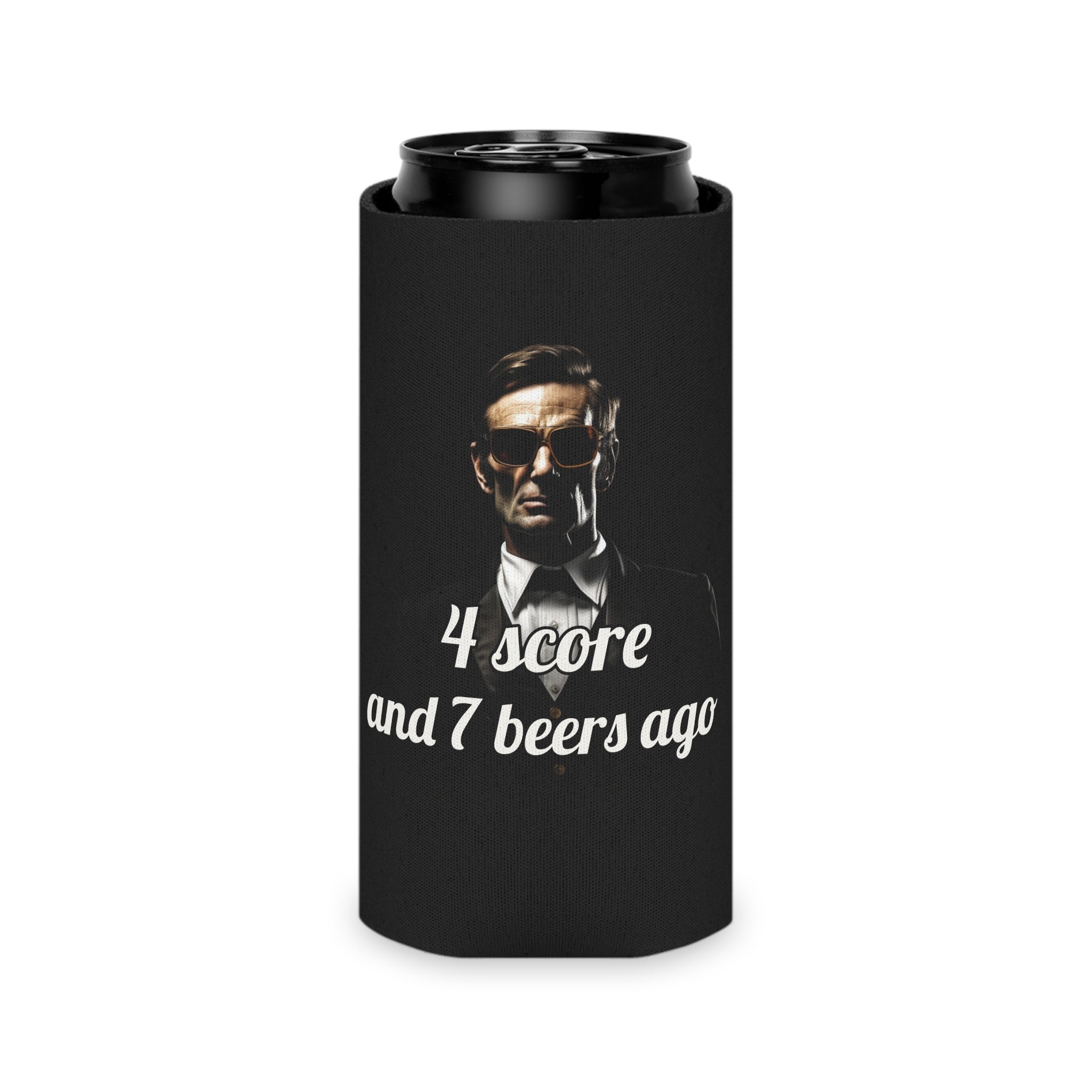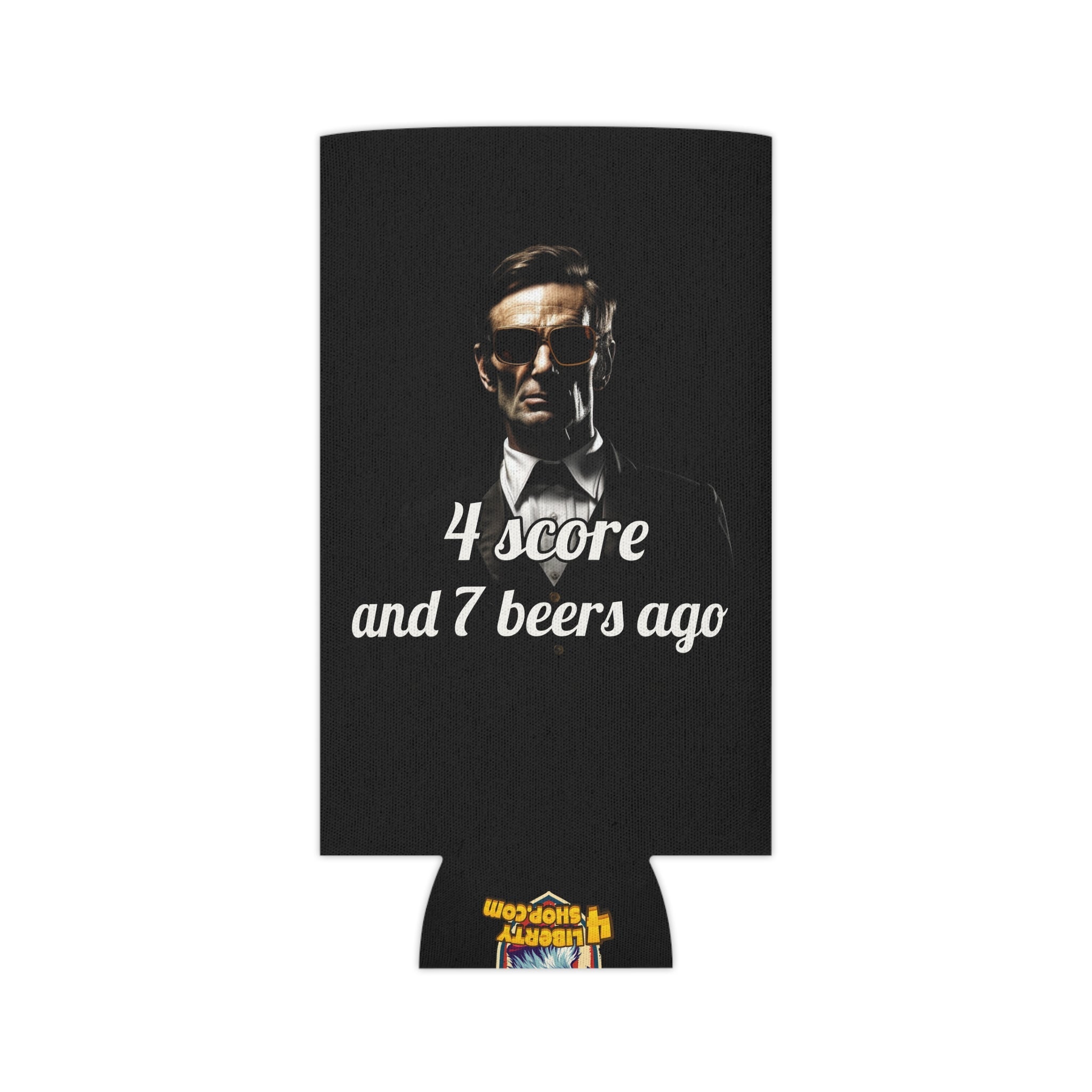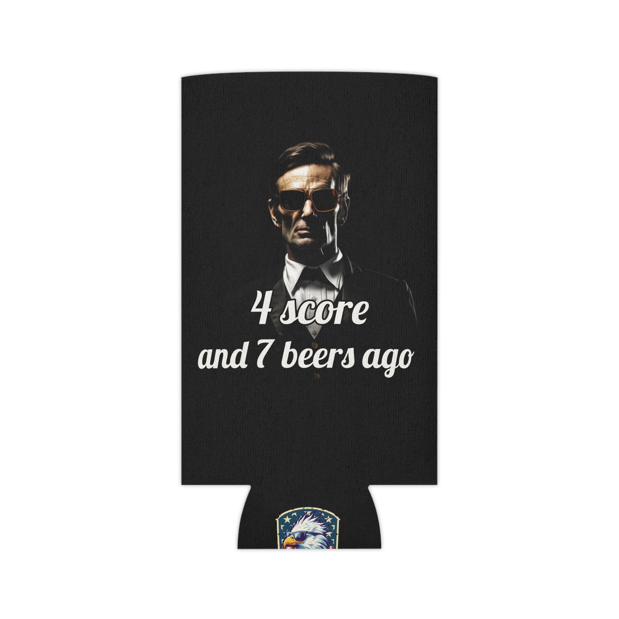 4 Score and 7 Beers Ago Abraham Lincoln Koozie ‐ Slim Can