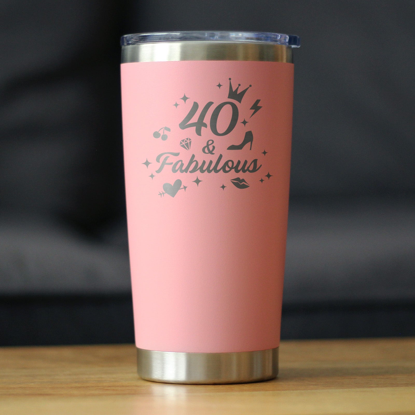 40 And Fabulous - Insulated Coffee Tumbler Cup with Sliding Lid - Stainless Steel Insulated Mug - Funny 40th Birthday Gifts for Women Turning 40 ‐ Pink