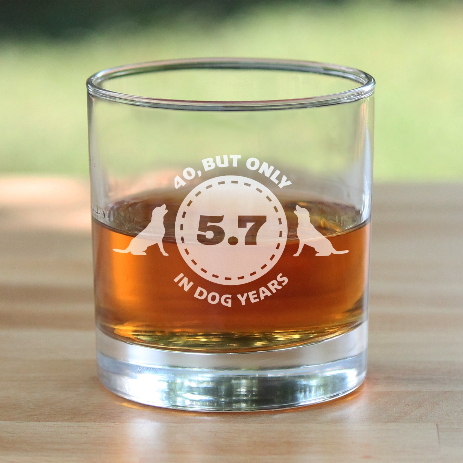 40th Birthday Dog Years - Whiskey Rocks Glass Gift - Unique Funny Bday Gifts for Women and Men Turning 40 - 10.25 oz Glasses