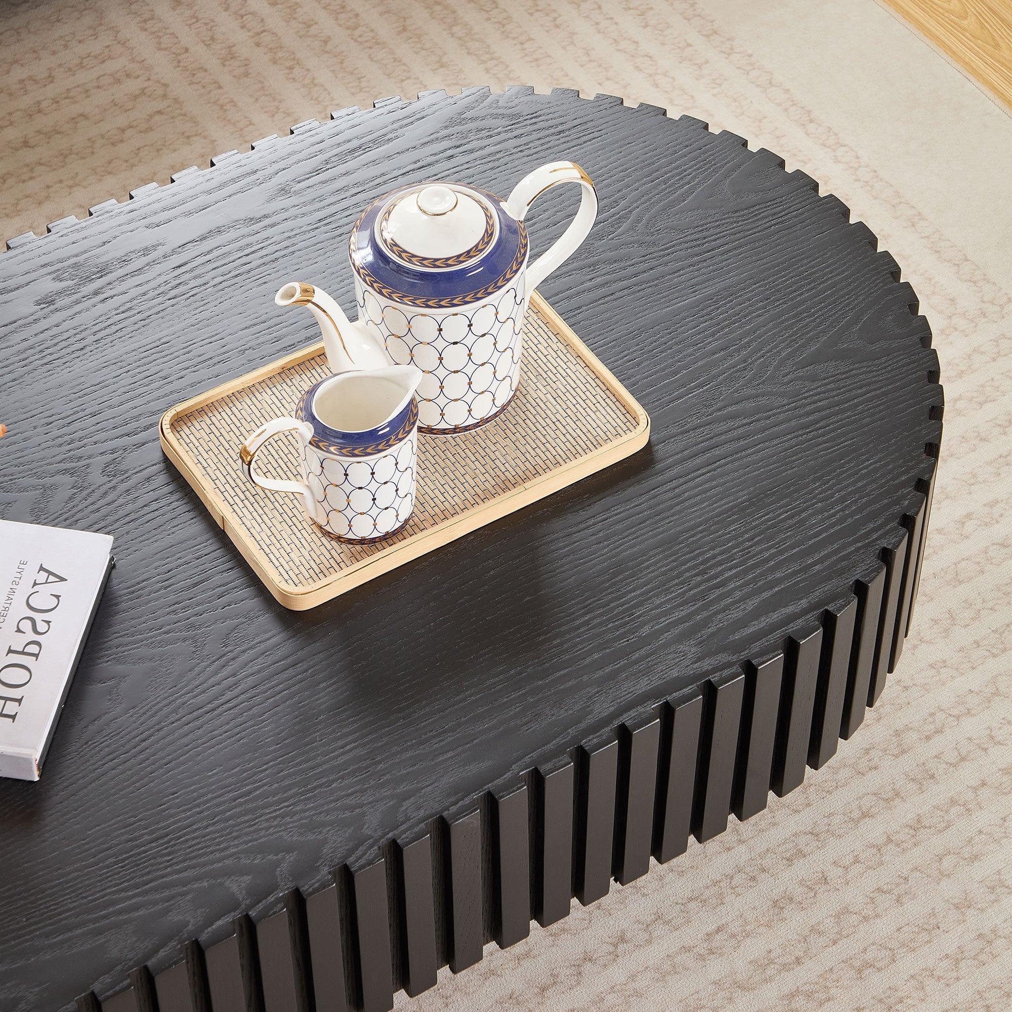 43.70 Inch Modern Handcraft Drum Coffee Table Oval Coffee Table for Living Room,Small Wooden Coffee Table with Sturdy Pedestal for Office,Black ‐ Default