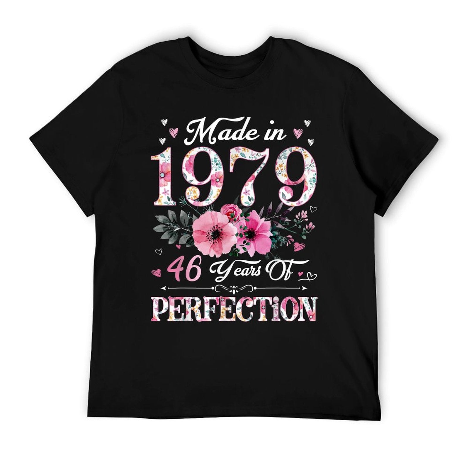 - Heat-transfer prints retain vibrant colors wash after wash, perfect for 46 Year Old Made In 1979 Floral 46th Birthday Gift For Women casual outfits or statement streetwear.