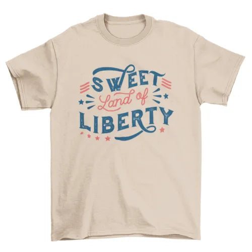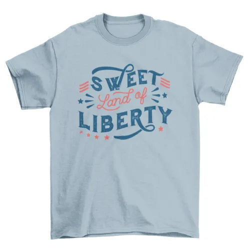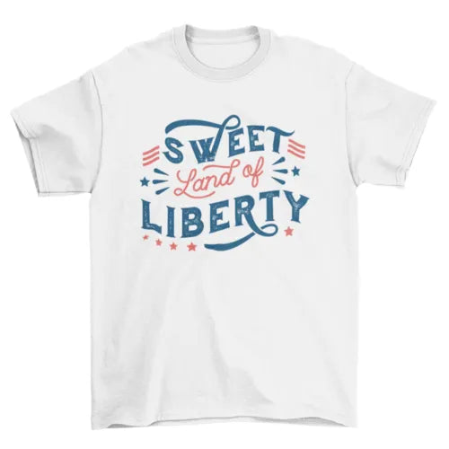 Incredible Fourth of July t-shirt design that features the quote "Sweet land of liberty".