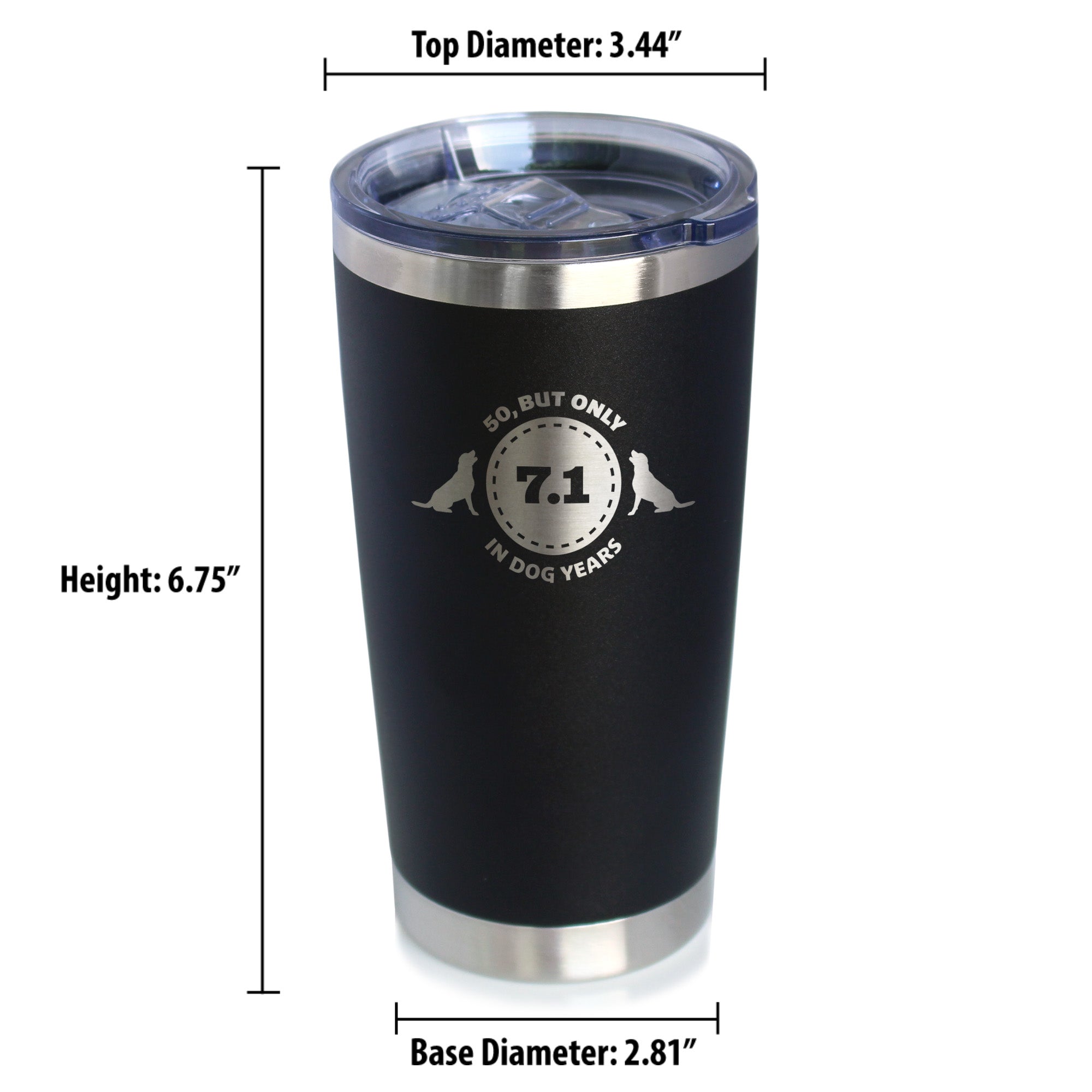 50th Birthday Dog Years - Insulated Coffee Tumbler Cup with Sliding Lid - Stainless Steel Insulated Mug - Funny Bday Gifts for Dog Lovers ‐ Black