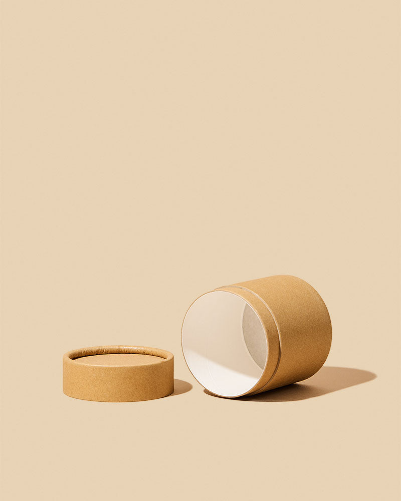 Sturdy eco-chic 200 ml Kraft Jars made out of sustainable & renewable Kraft paperboard and plant-based, biodegradable, oil-proof, wax paper lining for product packaging. Includes jar and lid. Kraft jars available for bulk purchase.